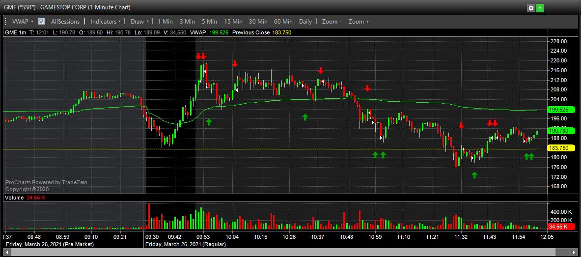 These trades were all 100 shares and all were short. never got more than 300 shares at one time, but this stock is way too volatile to trade much more size.