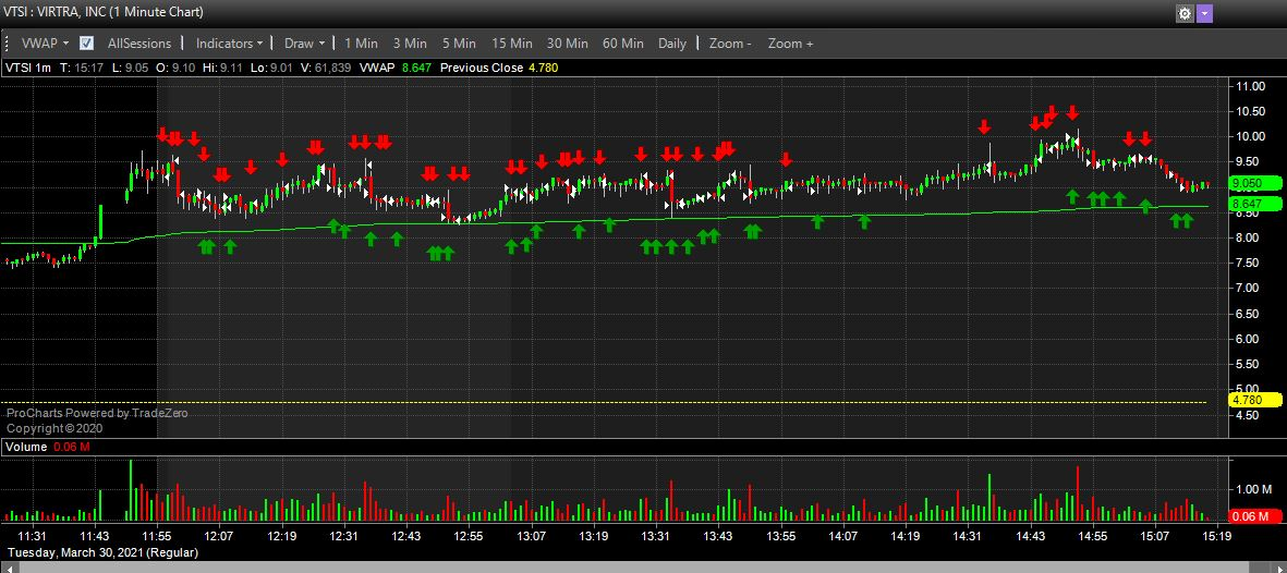 Then came along a chatroom pump. Got squeezed a bit when they came in, but got some really good adds on them. Here are all the trades. I'm still short 500 right now from 9.67