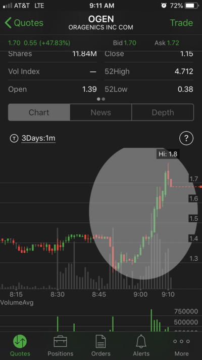 Welp... Missed dip buy opportunity on OGEN. Released news on presentation at MicroCaps conference @1pm. Expecting it to bounce later in day still. Had alert set at resistance of 1.50. Dipped down perfect n hit bottom, spotted that but couldn’t pull trigger again. Missed .30-40 but happy I spotted this in the end
