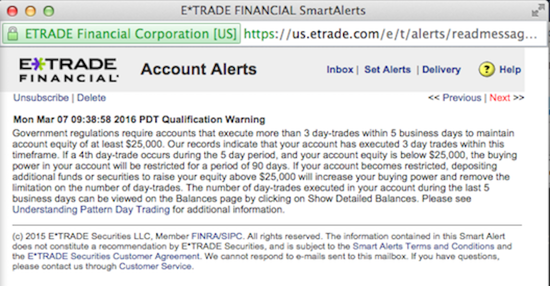 I got scared off by SureTrader's website with all the stuff about not serving US citizens, and also didn't necessarily want to deal with having funds in accounts outside of the US. Also, not everybody has the luxury of opening multiple accounts. I think it's good to have some time to reflect on what has worked and what has not, so the PDT rule does not bother me that much. My hope is that any posts I make can help others.