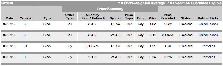 I want 5 cents up side on WRES and 20 cents upside on REXX.