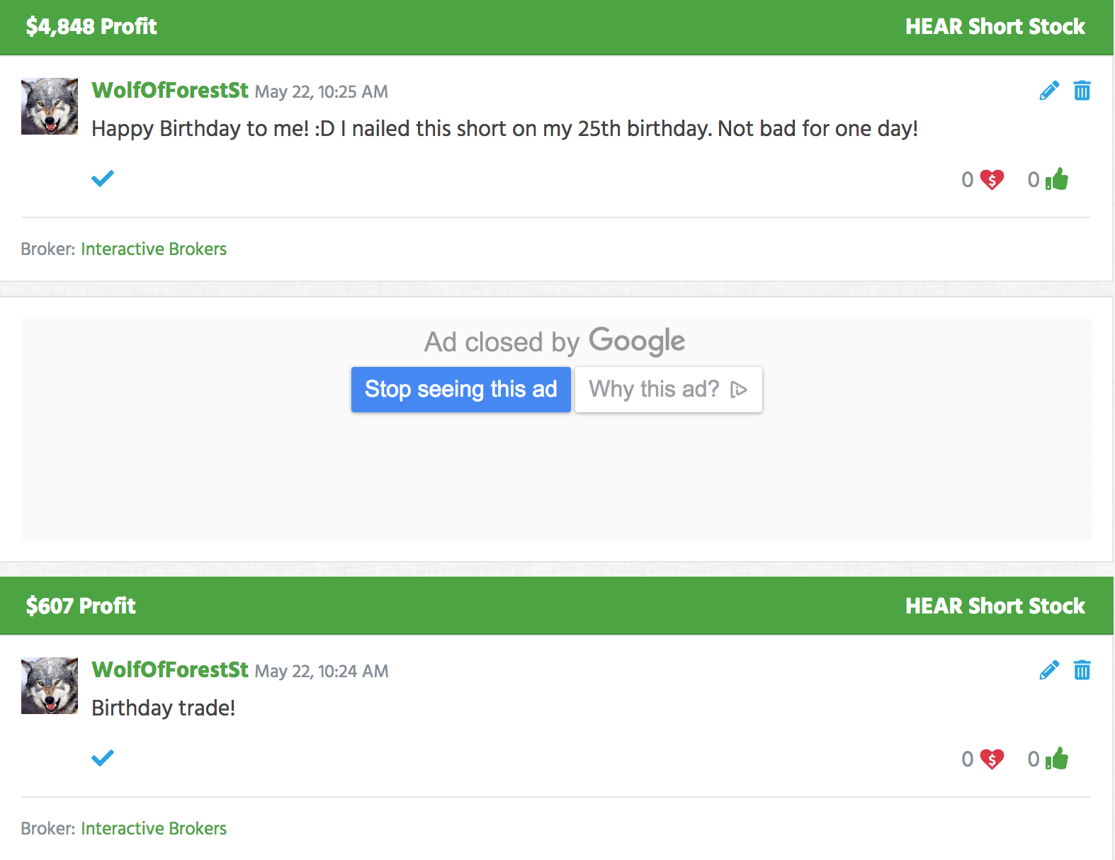 Today is my 25th birthday, I just closed on my first home (coincidentally), and I am up over $5000 today trading $HEAR. I've been working very hard, looking at stock charts till my eyes bleed, but life is so damn good right now and studying definitely pays off!!!