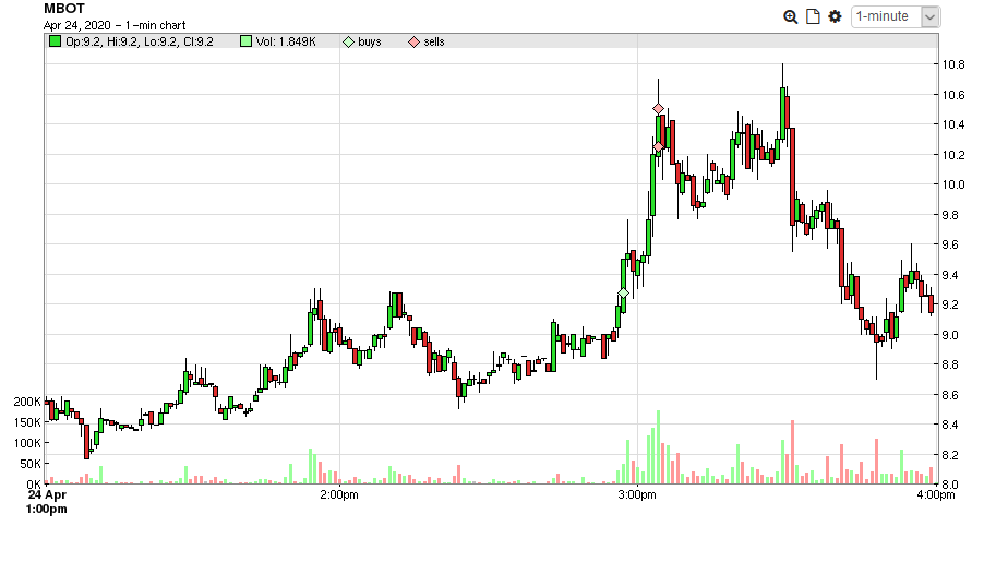 Friday was my largest day as a Trader. Two trades. I was like a sniper. I waited until my specific criteria were met then I took the trade. $MDGS was a well-timed trade! I was very patient. I had a gameplan. I was like a fucking sniper! I recognized this pattern as a nice Gap Reversal. As this made a nice bottoming action, I was ready for the push. Two Trades on this one, as the first time the resistance rejected, no big deal I simply locked in gains. The second trade was the charm, as that was the push we needed. I did not get greedy I simply took a piece of the emove. My goals were hit and I simply walked away. $MBOT was a great reaction trade. I recognized that this was a former runner. Overall I was patient, yes I could have gotten a better entry but I was waiting for the confirmation break past 9.25. I knew that this could have the potential to run. An overall quick move and I did not overstay I locked in gains. Onto the Next!