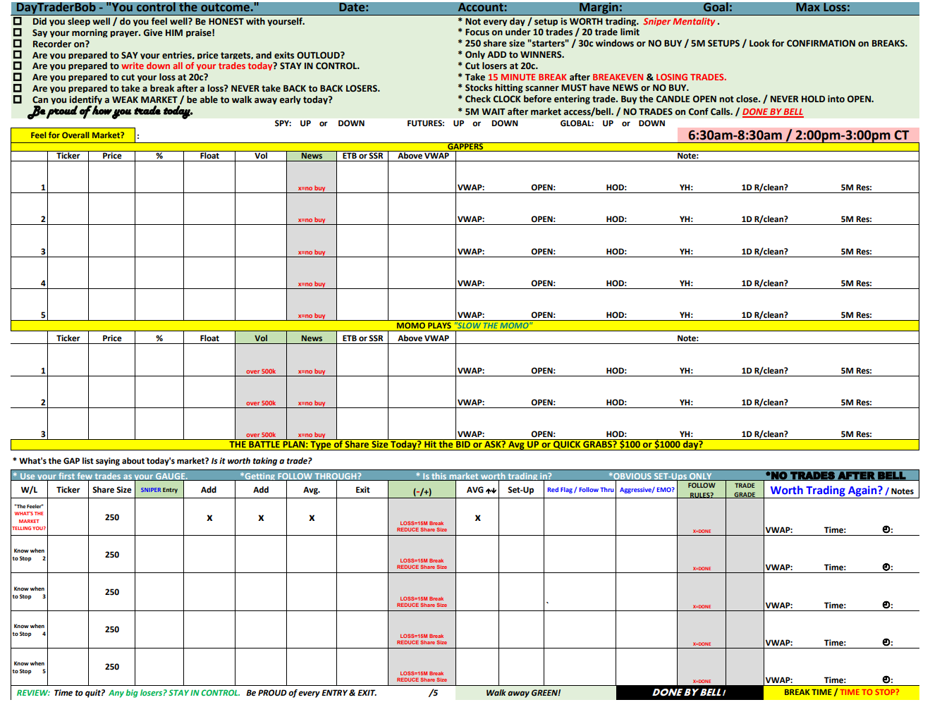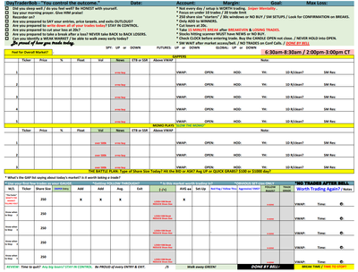 Welcome to my live day trading journey! Here's a look at the tracking sheet I've created and use every morning! No plan, no trade! @timothysykes
