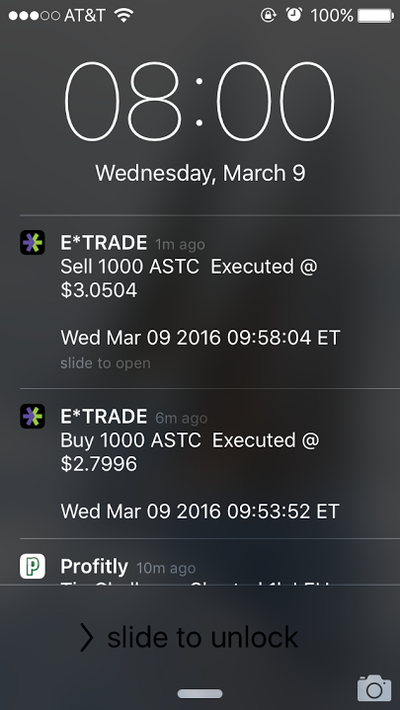$ASTC 1000 in @2.7996 out @3.0504 took quick profits $230. department of homeland security awarded contracts for next generation explosives. looked like the top was around 3.10's. tried to execute in the 3.50's but no luck then didn't want to chase let it consolidate a bit tried again with low float felt it was worth the risk. I had my finger on the sell button the whole time THX @timothysykes & stocks to trade. ๐Ÿ˜ˆ