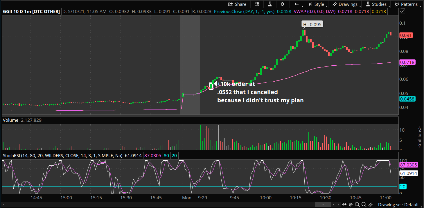 Alright where do I begin. I've been having an internal war in my head ever since I restarted in mid FEB. I feel as if when I first started out I was doing better because I knew less. Now that I know more(at least I think I do) I am just sooooo hesitant on every single play. I had this on my watch-list this morning for a multi-day B/O above .05 and I saw it at the open start to pick up momentum. I chose not to buy right then and there because I spend every morning watching pre-market prep by TBOHEN and he always says wait till 9:45am to let things set up. But the setup I see you would need to be in early and take the meat of the move and leave but I'm just too scared to do so still. He has more experience and more knowledge than me so I feel like I have to listen or I'll lose money even though I'm losing money regardless. I keep trying to trade the listed stocks and just keep continually losing and losing because I never know where to enter or exit or risk or any of it. I just don't see how people traded them I just don't see what they see and I just keep doing it because I feel like it's "the thing i'm supposed to do". I come into every morning telling myself to trade only OTC B/O's because I see the R/R better but I always pysch myself out as well as get lost in all the noise of the listeds on STT scanners. FOMO is a big part of the loses on the listeds for sure but like I said IDK where to enter so everything feels like a chase to me. I really don't know how I'm supposed to fix this, bleeding myself dry with the listed stocks so I have to come up with something or I won't be in this game for too much longer. RANT OVER LOL.