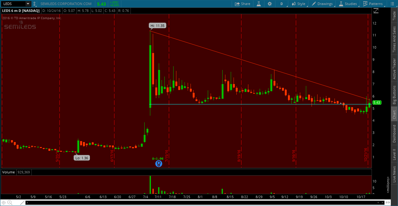 LEDS hit it's 50 day Moving Average today around the $5.70's level, if it breaks that it could run to $6 possibly even more HMNY had a huge run on friday, and usually run on second days, it might have a red day tomorrow.