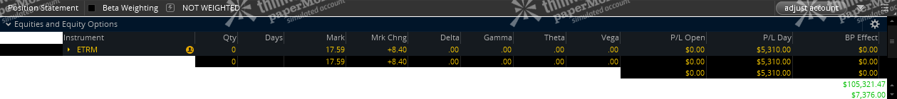 Why am I so comfortable Paper Trading and making Huge Profits, but when it comes to the real deal I'm such a Pussy, today I decided to Paper Trade after I missed my play on XGTI because of internet issues, (my entry point would've been the $2 mark). I decided to HOTSPOT my phone and paper traded ETRM, honing in on some skills and set-ups that I like, buying off of the TRENDLINE, buying the PULL-BACK as well as the WEDGES and BULL-FLAGS.