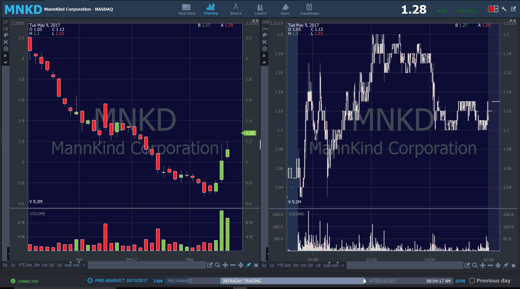 MNKD 7:09 AM - look for first snap to red for a potential short (didn’t go red on this runup from 0.69 yet)