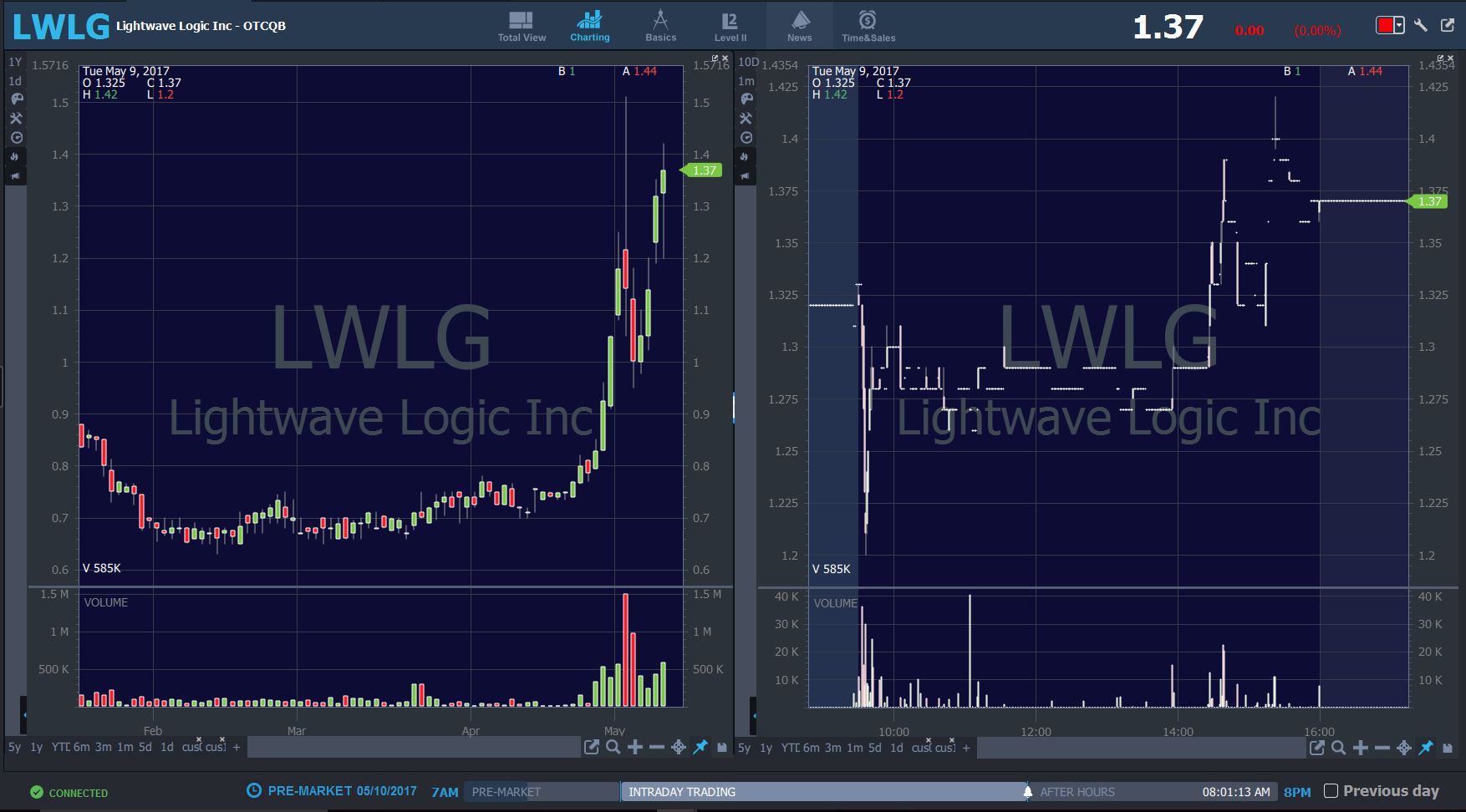 LWLG 6:51 AM - on watch for otc dip buy, likely wont like the dip buy because illiquid, also potential short into 1.50 resistance area on the daily chart
