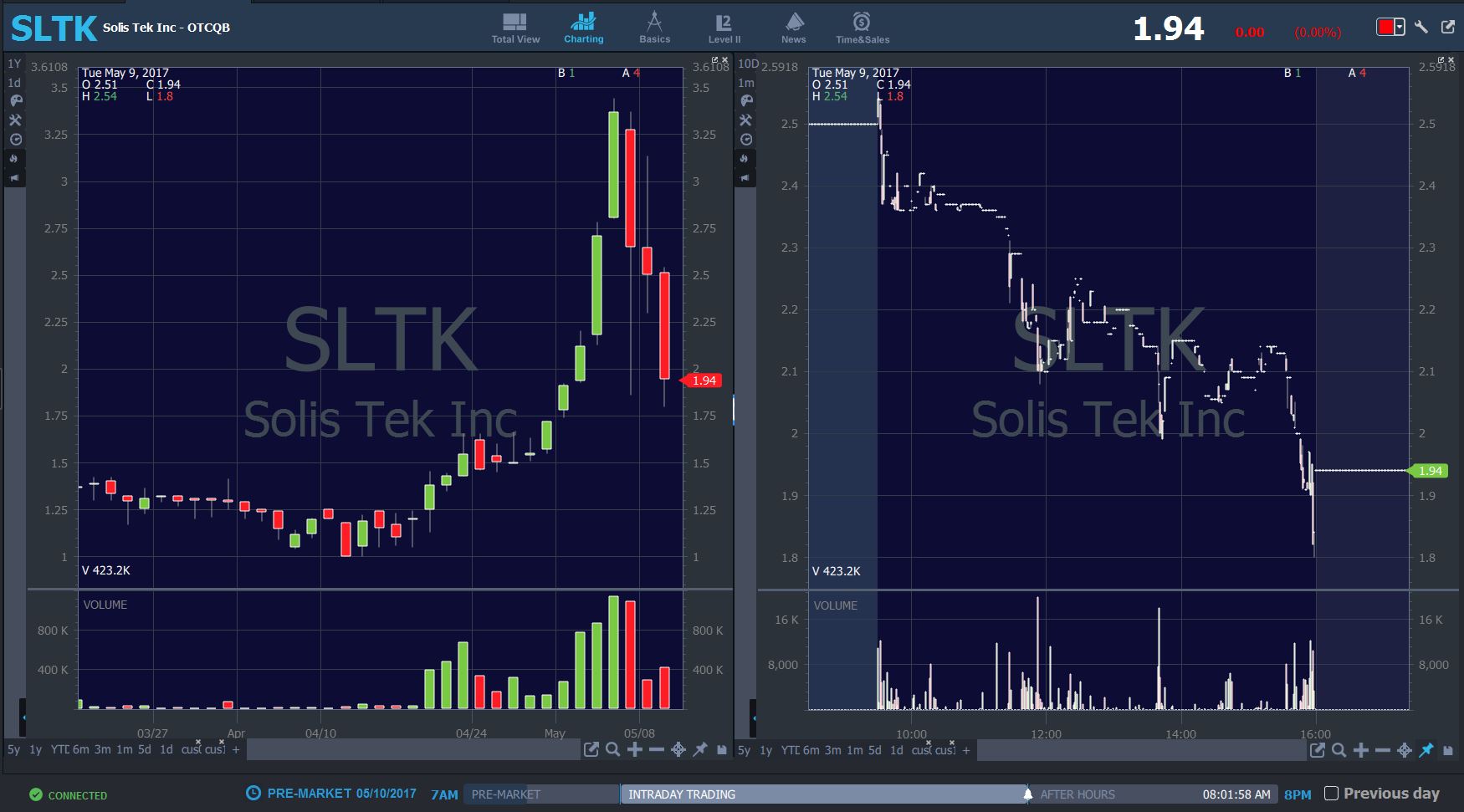 SLTK 6:54 AM- missed the short on this as well as the dip buy, pattern played out exactly how I expected so glad I was on the right track, could still offer a dip buy on the daily chart but ideally would rather short a bounce after the dip