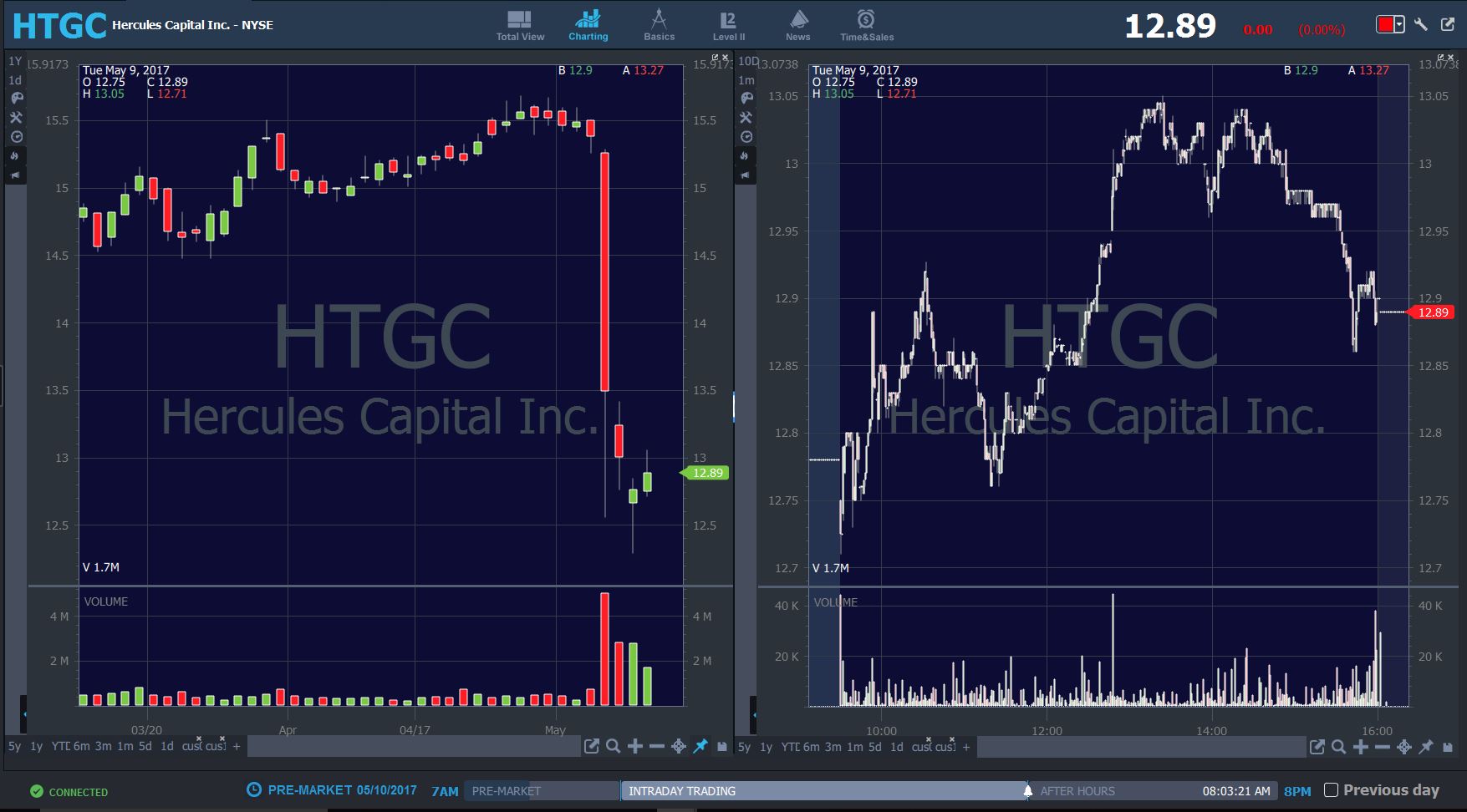 HTGC, CTL 7:00 AM - both potential shorts when their bounces get tired ideally on a green to red move