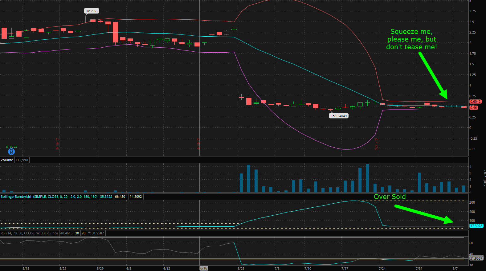 $NEOT: I've been swinging this since the low .50s waiting for the inevitable pop that is brewing as indicated by the Bollinger Bands squeezing on the daily chart. This is a setup that keeps delivering time and time again, so I'm playing it whenever I can get a good entry. This type of play is perfect for me because I don't have to babysit it all day. Looking to hit my first price target of $0.63 and hopefully go for a gap fill. Also - they are expected to release good earnings sometime this week.