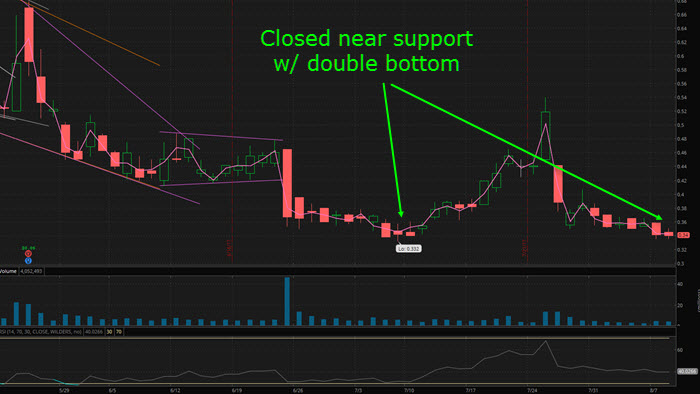 $SDRL closed today near its current Support level of $0.33. Chart has formed a double bottom and we saw a small move and bounce off $0.33 Support level. Looking for a run up to Resistance of $0.41.