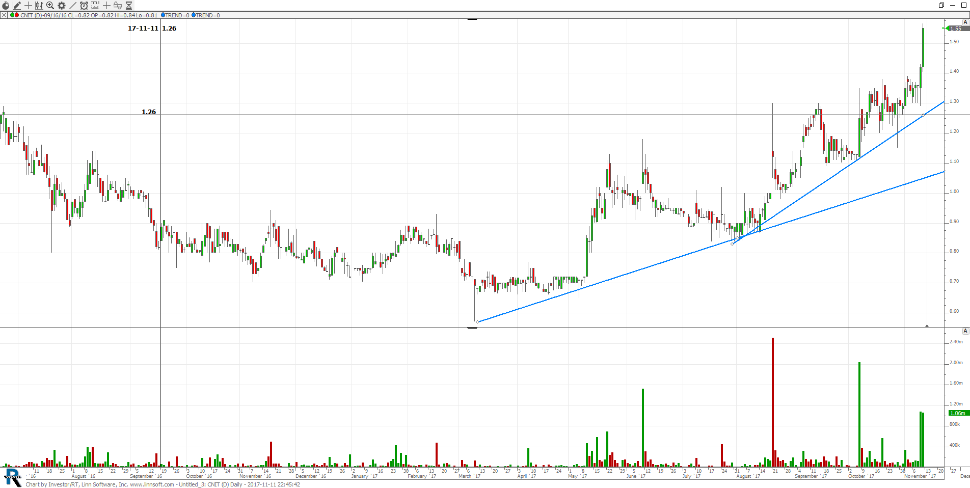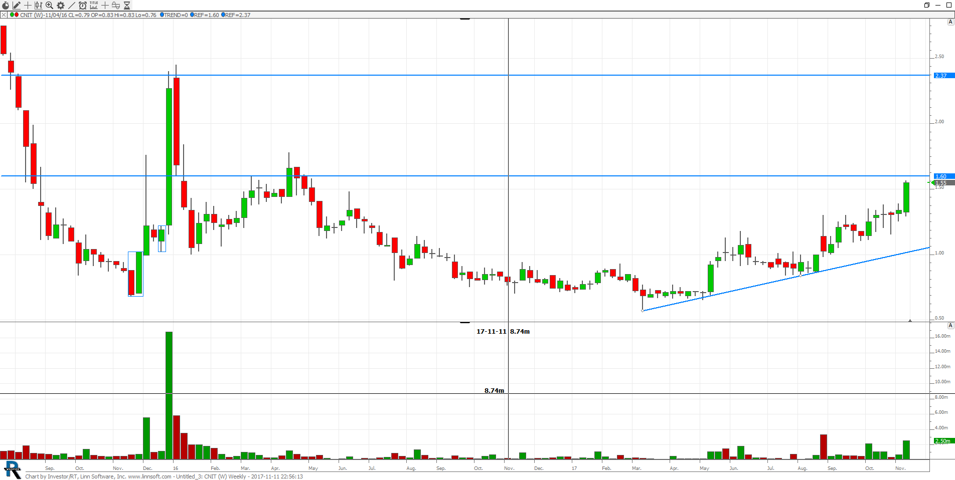 2 ) Earnings report is Nov 13th, so if reaction is good - the catalyst could be strong enough to push CNIT higher.