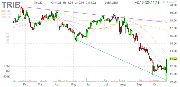 I also have my eyes on TRIB, the chart is showing a beautiful double bottom and if the price can break out past 14.5 I may buy.