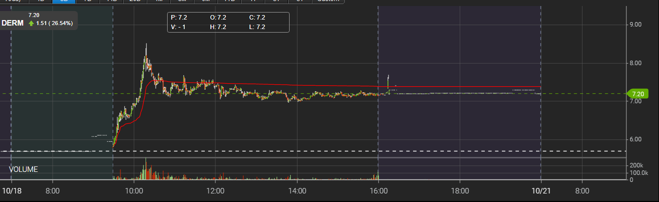 NOT micro cap/float. Want to track it though as the pattern fits the midday perk pattern. Spike in the morning and holds half it's gains. Didn't perk into the afternoon. No volume. 1st green day runner with news though. BUT it's also a biotech. Want to see what it does on Monday.