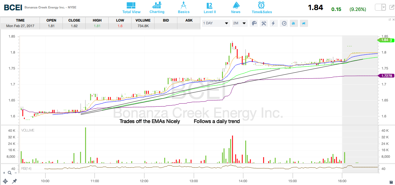 BCEI- I said yesterday that this would find support at 1.60 which is previous high for this chart. Not only that but it had been red after 9 consecutive days. It means its due to find a bounce. Now that it has, I'd watch to see if it can break past 1.83 but not trade it till it crosses $2. Whole dollar numbers are too risky to trade when the stock is only a few cents away from a major key level of resistance. Wait for it to cross $2 and find some support.