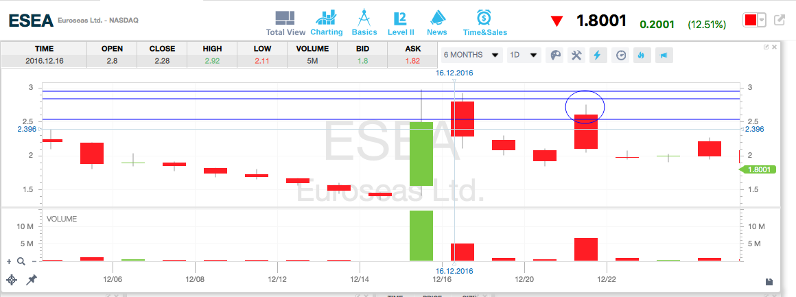 $ESEA had immediate daily resistance above it so it's no surprise people were selling into the spike. Had I have known what I know now I wouldn't have played it.