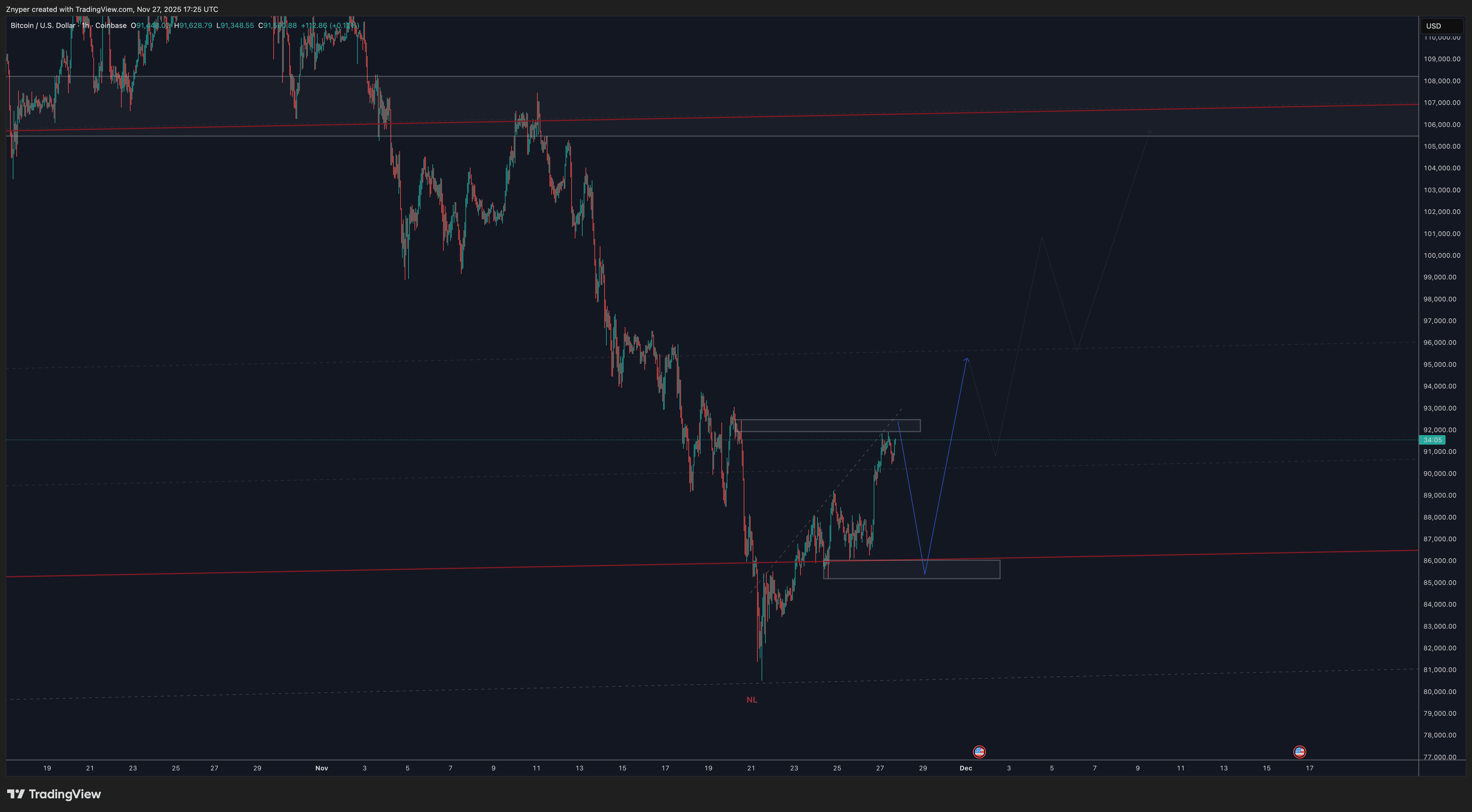 patiently waiting for the following move : shorting BTC from $92k down to $86k, market shows positive reversal but we dont have yet a higher low on HTF CHART, SO MY PLAN IS TO SHORT THAT DOWN TREND LEG AND LOOKING TO GO LONG ONCE WE BONCE AT $85K UP TARGETING $105K