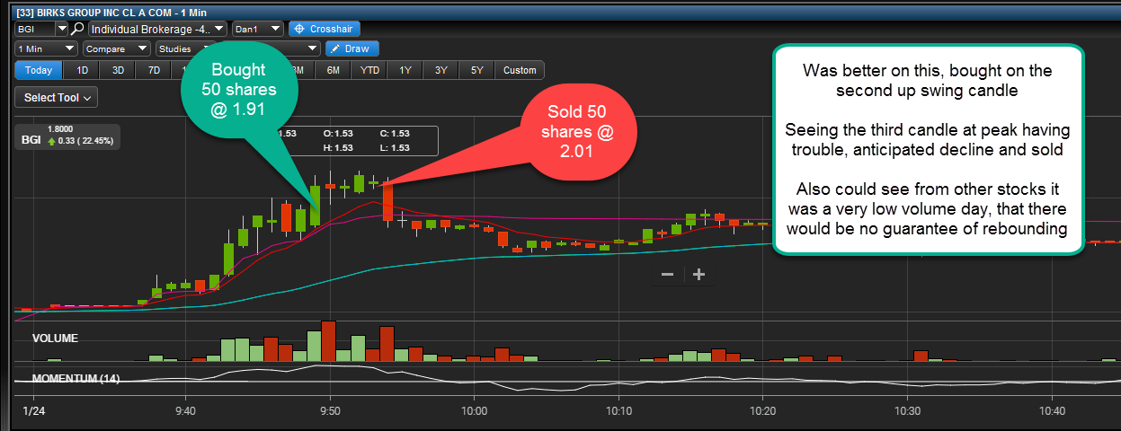 1st day of trading with real money after watching and paper for 3 months. Nothing big, but to get the feel for it all. Used Robinhood, it is slow and not as reliable as all claim, but to just place some small real trades to get into the groove it was good. Will amp up as I get more confident.