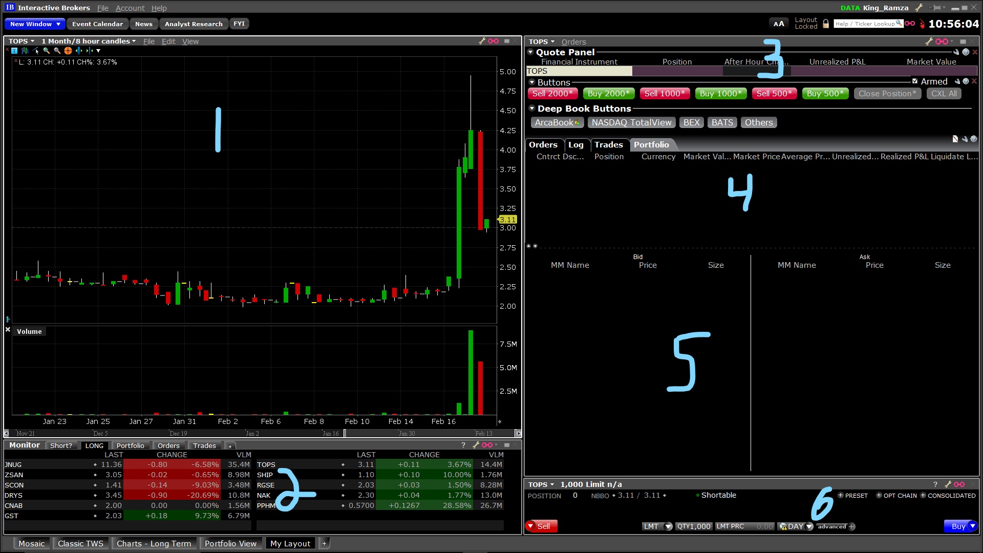 Here's my set up for Interactive Brokers. I really like this setup because getting in and out is really easy with the "Hot Keys" I've set up. I have numbered each section and will write below a description. If you find this helpful don't forget to give a Karma and a follow. I will continue to post what I am learning.