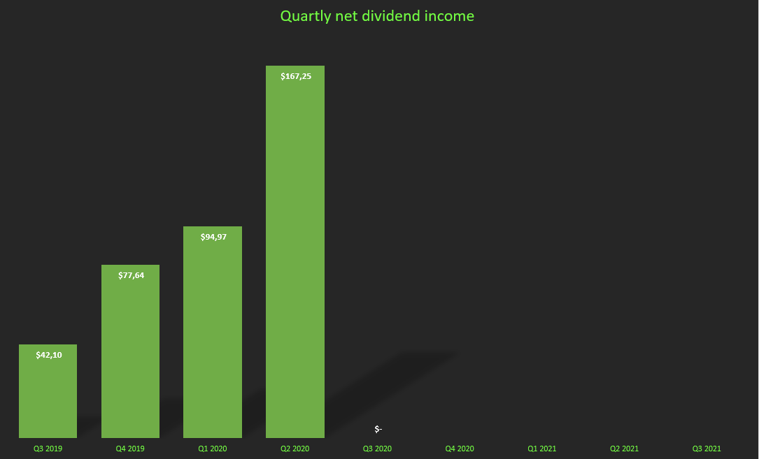 My dividend income is growing nicely Here you can see my net dividend income ( after 15% tax ) Posted Jul 04, 20 4:12 PMbyKrogzaxViews 189 / 0Received 0 Karma1speeder Jul 05, 20 11:52 AMWow! This is great. Keep up the good work. Thanks for sharing.Join now or log in to leave a comment