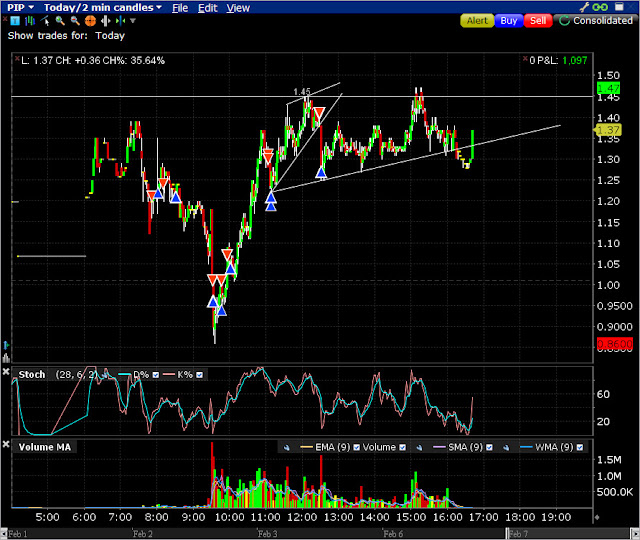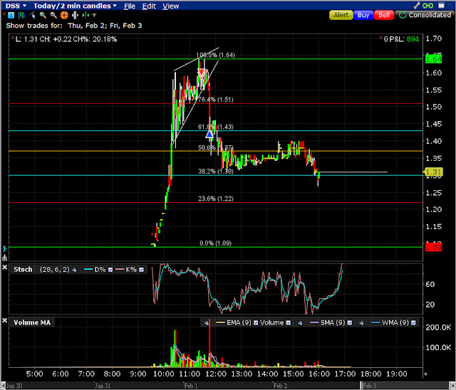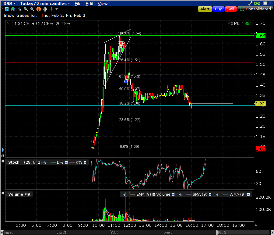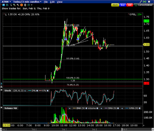 Notice on this chart buyer exhaustion as it began to draw thinner candles as volume increased. Notice also the stock didn’t make it to $4 (a round number that traders commonly use to base their trades off of). These are things I was very well aware of because I know exactly what other traders are thinking at all times and in the future. If I don’t know what others are thinking and thus what they’re most likely to do next, I do not participate in the trade. If the setups that I know aren’t present, I simply avoid the stock or put it on a watch list and wait for the next opportunity to present itself.