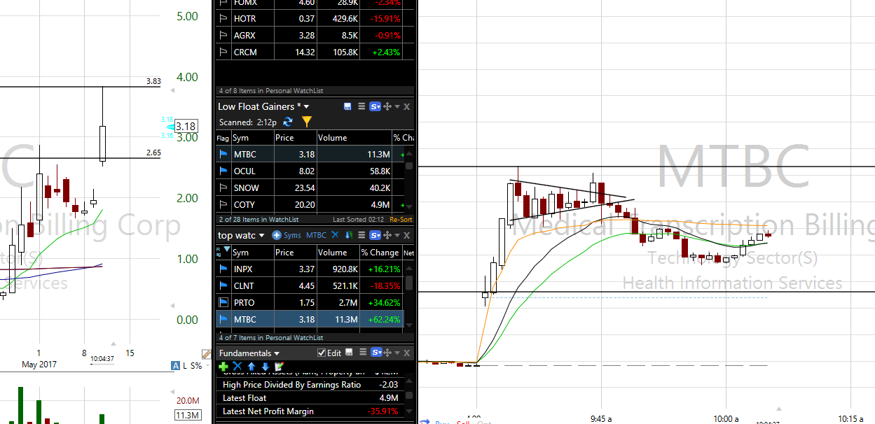 First trade was on $MTBC, after missing the crazy morning spike I wanted to get in on the bull flag which formed.