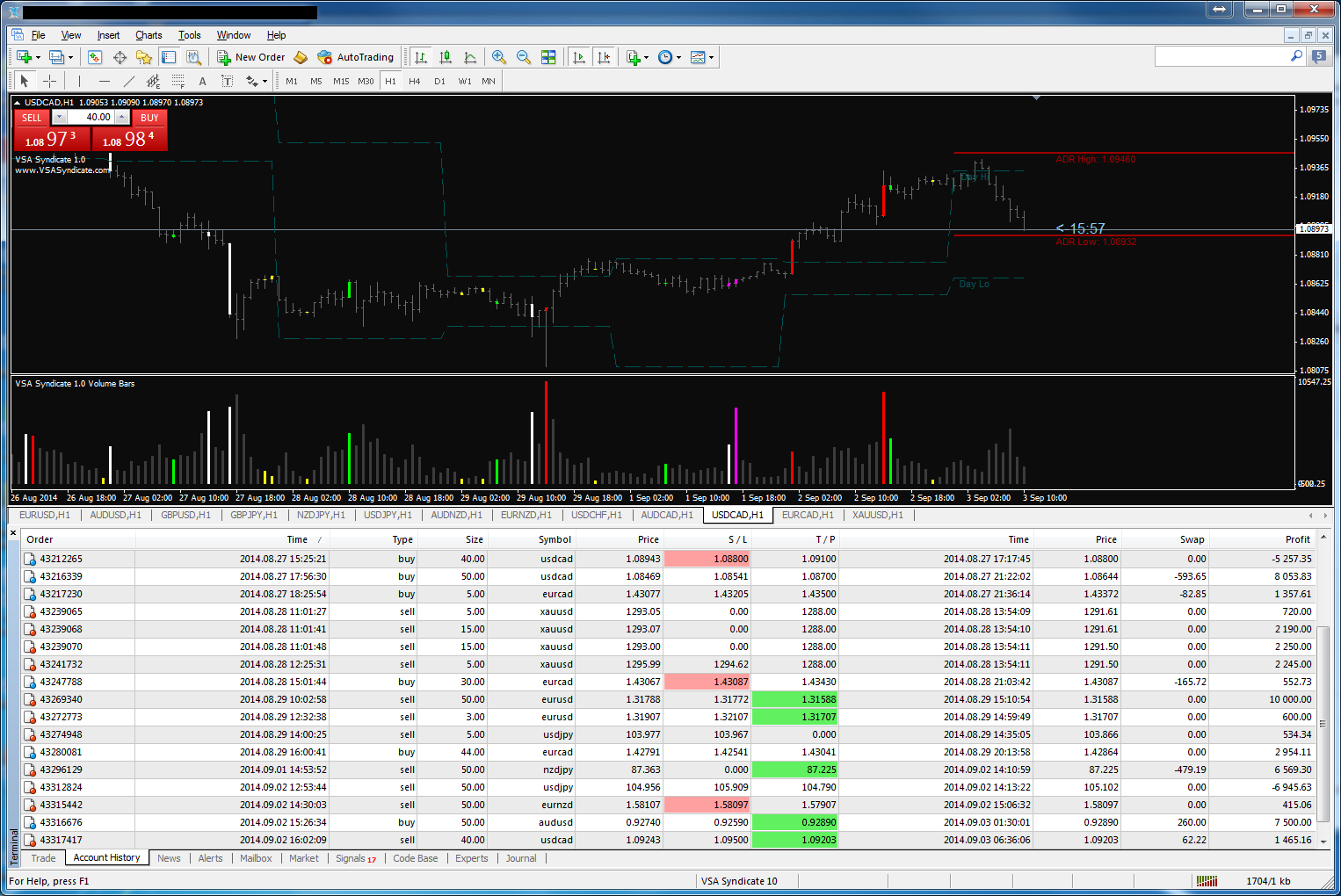 I would like to introduce my new chart system called VSA Syndicate 1.0. I will soon offer a license where people can use the system with their Metatrader 4 platform. I teach in the www.SocialTrader.me chatroom how to apply VSA to every single trade you make. Based on my experience, applying this method is the end of the hunt for the Holy Grail. Here is my proof of every forex trade I posted on profit.ly since I can't verify them through my broker.