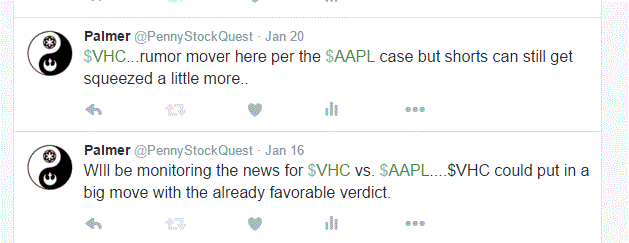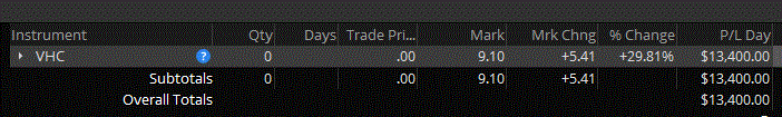 I put $VHC on my twitter feed about 2 weeks ago as one to watch: