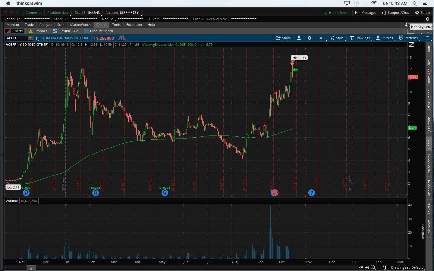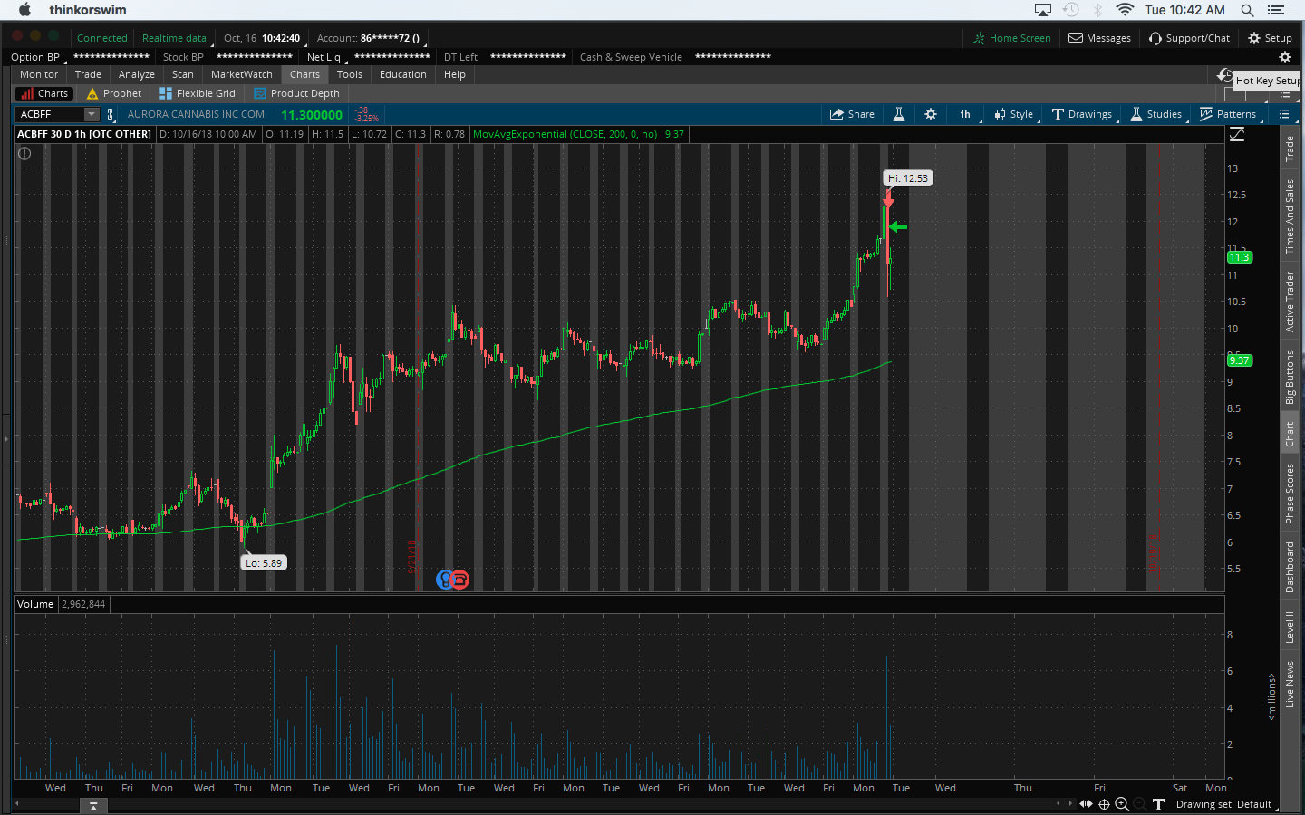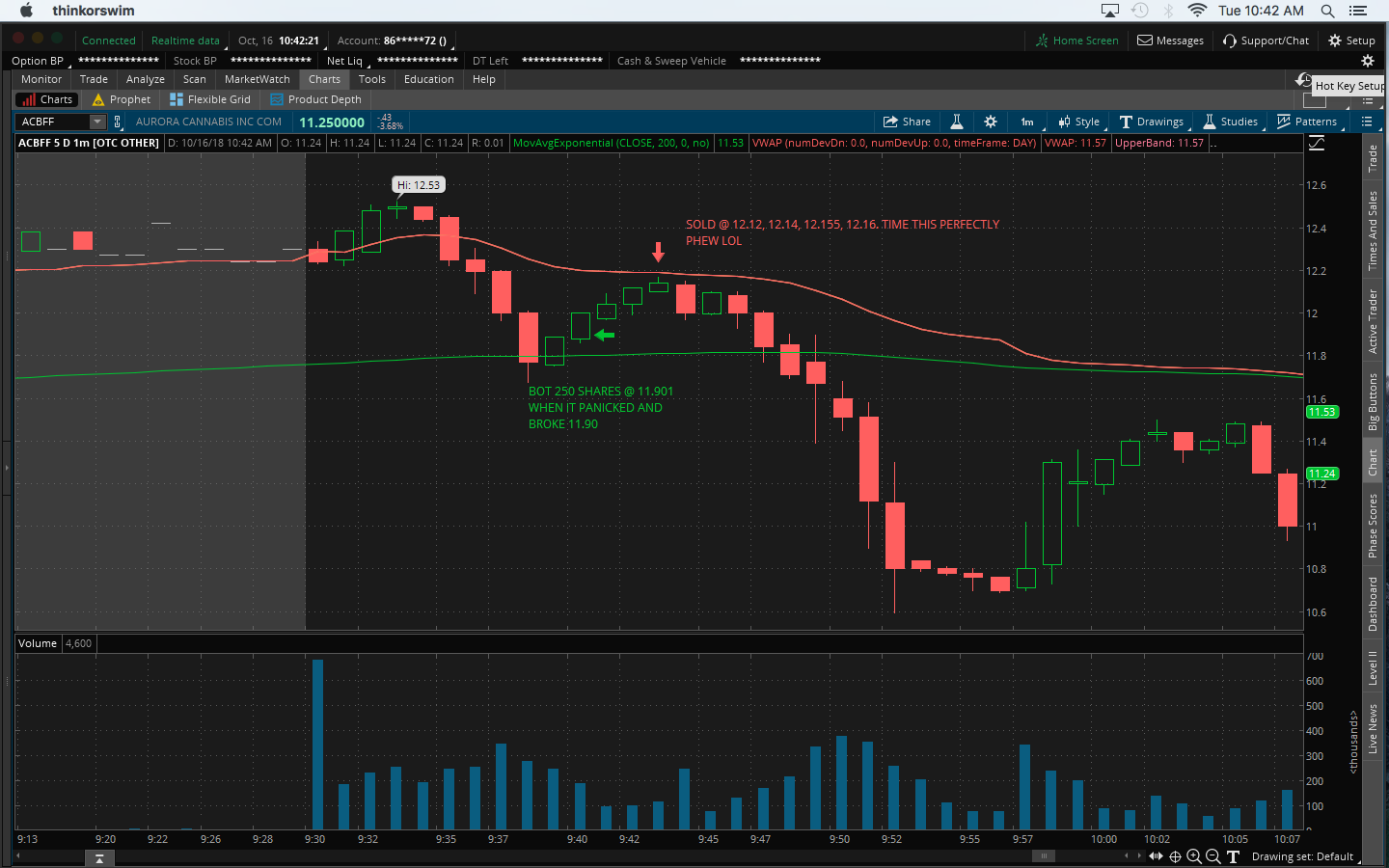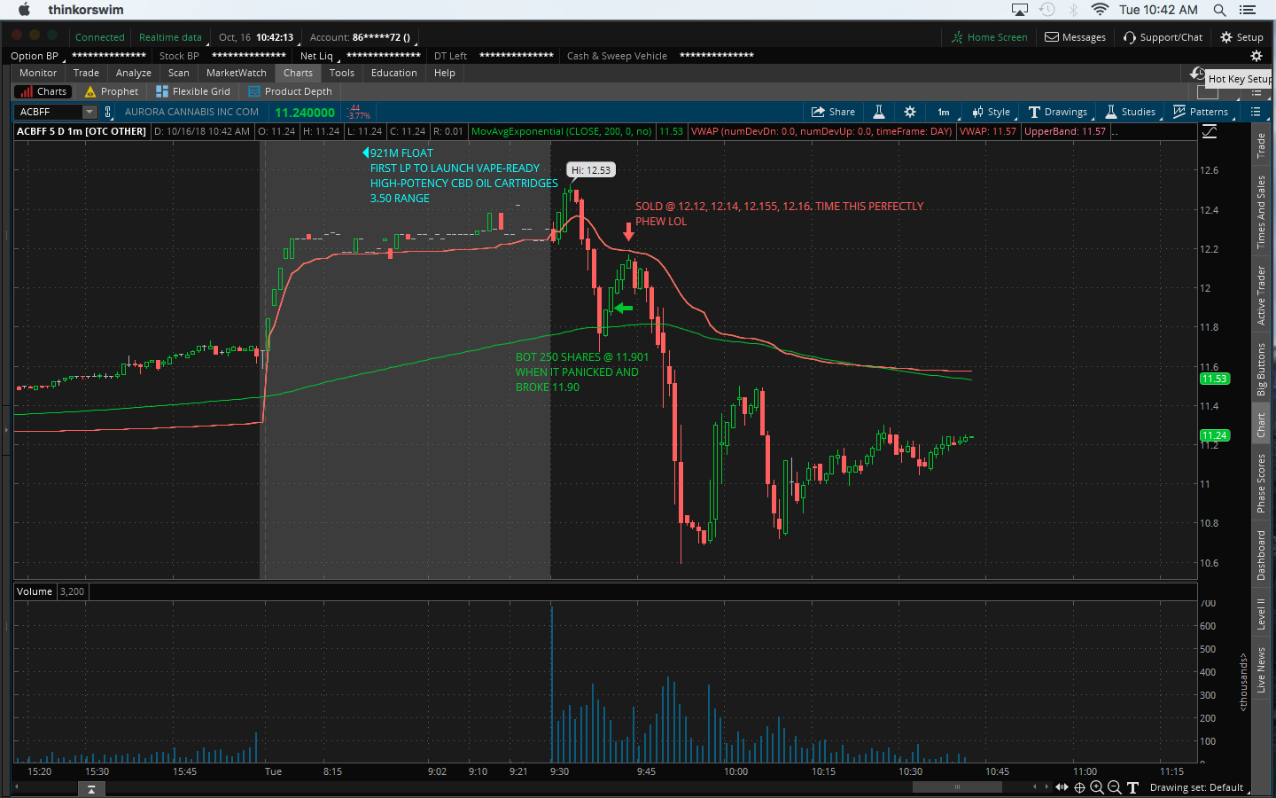 $ACBFF trade, 921M float, catalyst, 3.50 range. 22-26c/share win. Bought first bounce after the panic, timed it well as it dropped 1.40 after I sold but the second bounce was bigger Posted Oct 16, 18 10:44 AMbyPandabearViews 182 / 0Related Trades59.75 -- ACBFFby PandabearReceived 0 KarmaJoin now or log in to leave a comment