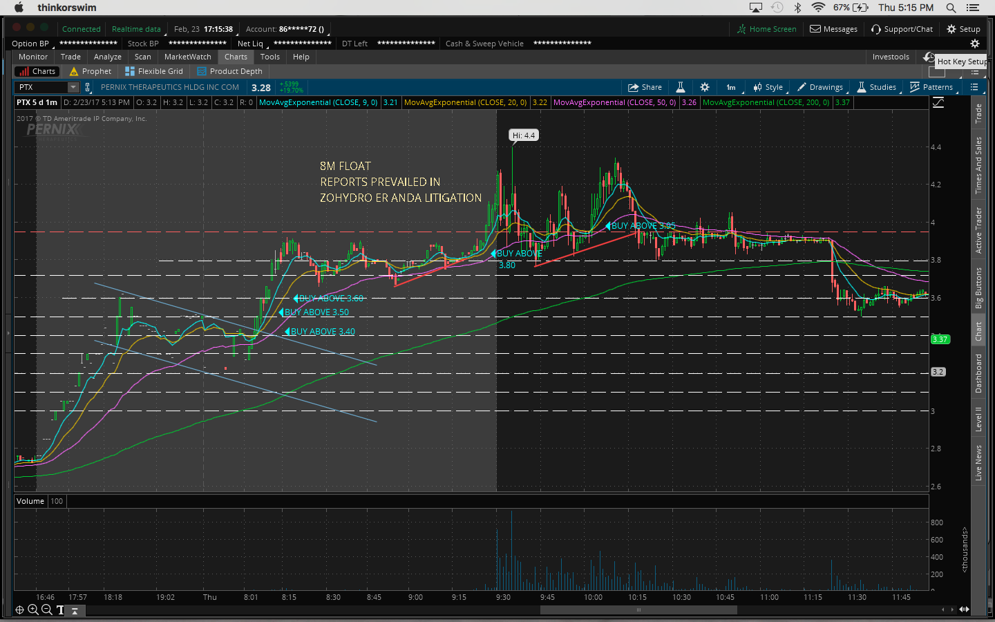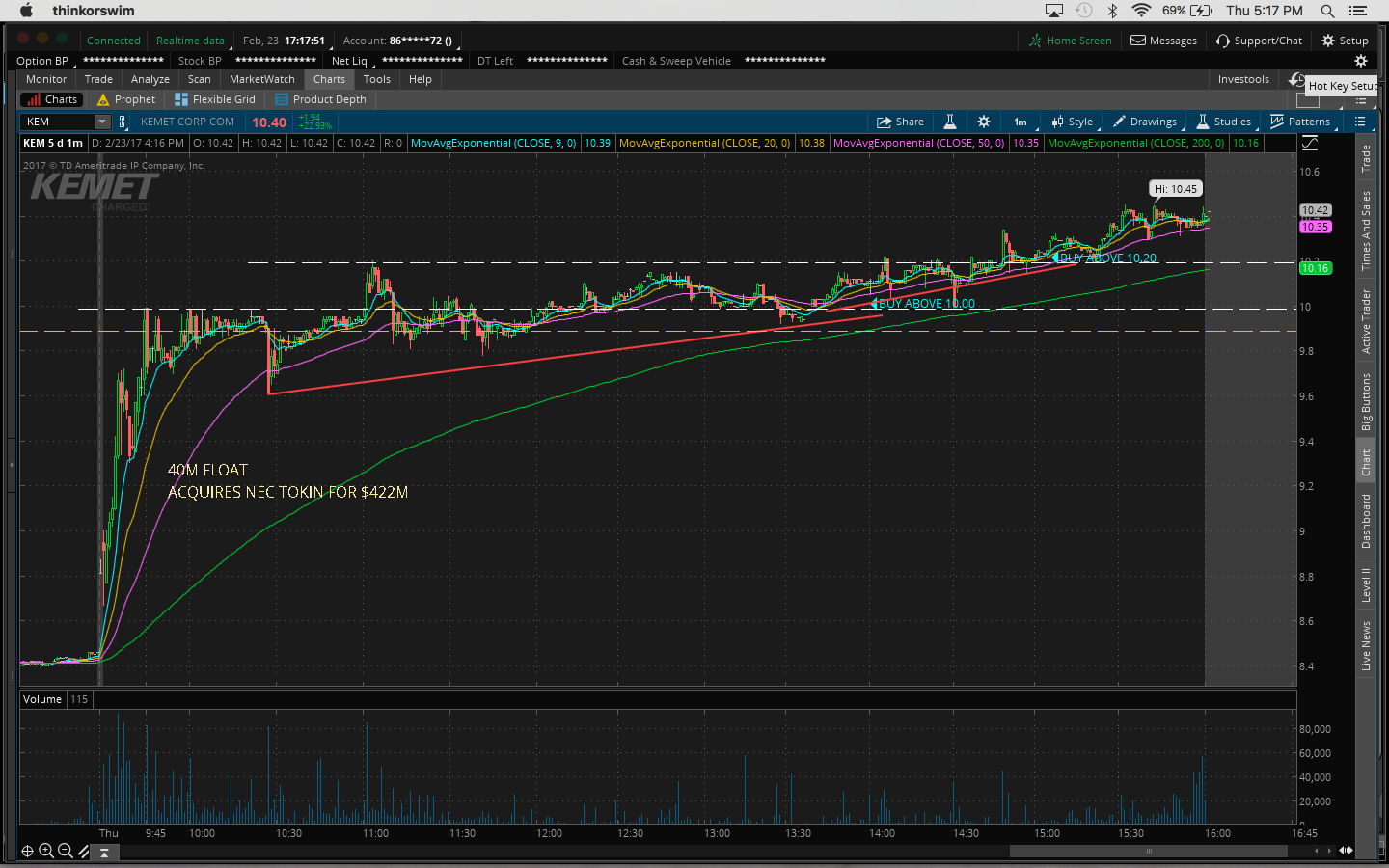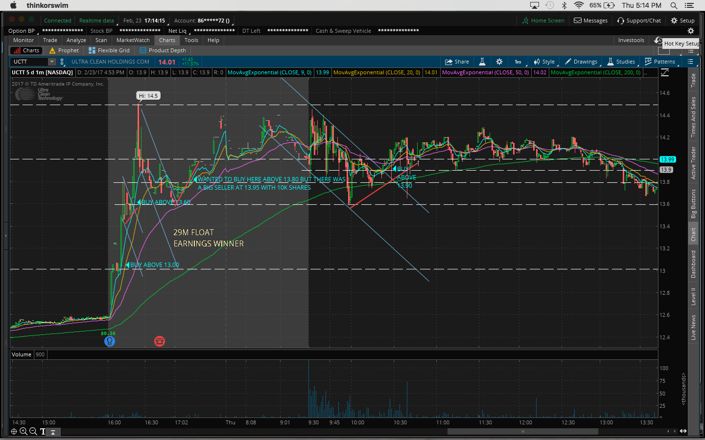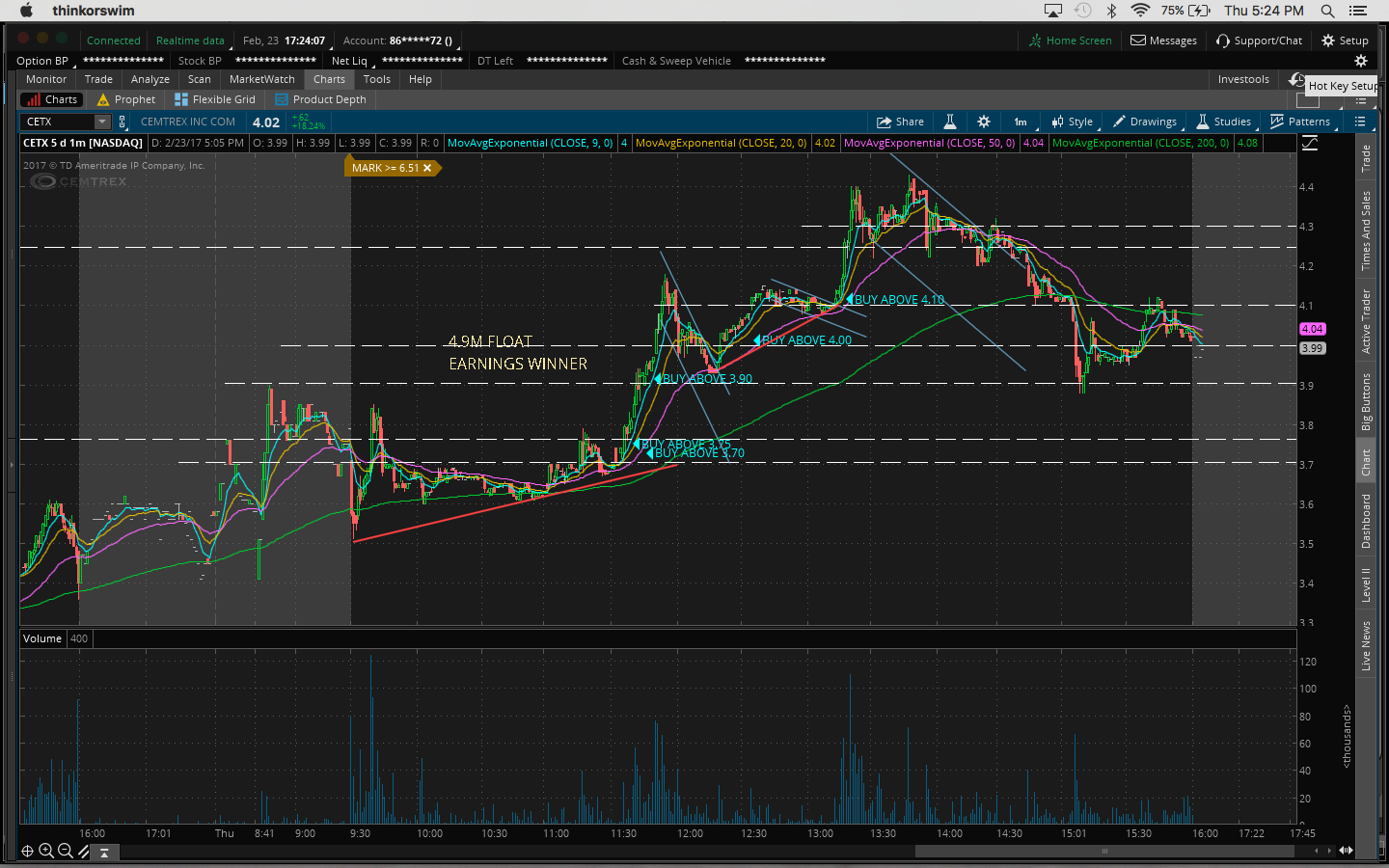 Charts for 2/23/17 - 11 stocks Posted Feb 23, 17 5:33 PMbyPandabearTickers OWCP, KEM, PTX, EYEG, UCTT, NAK, CETX, HOS, GNC, SQ, NVFYViews 82 / 0Received 0 Karmaavinash2060 Feb 23, 17 6:26 PMany tips for RNVA?Pandabear Feb 23, 17 7:36 PM@avinash2060 I don't like that it closed down on the day and there's resistance at 2.50 but I think you know better than me. You're up $24K :) Join now or log in to leave a comment