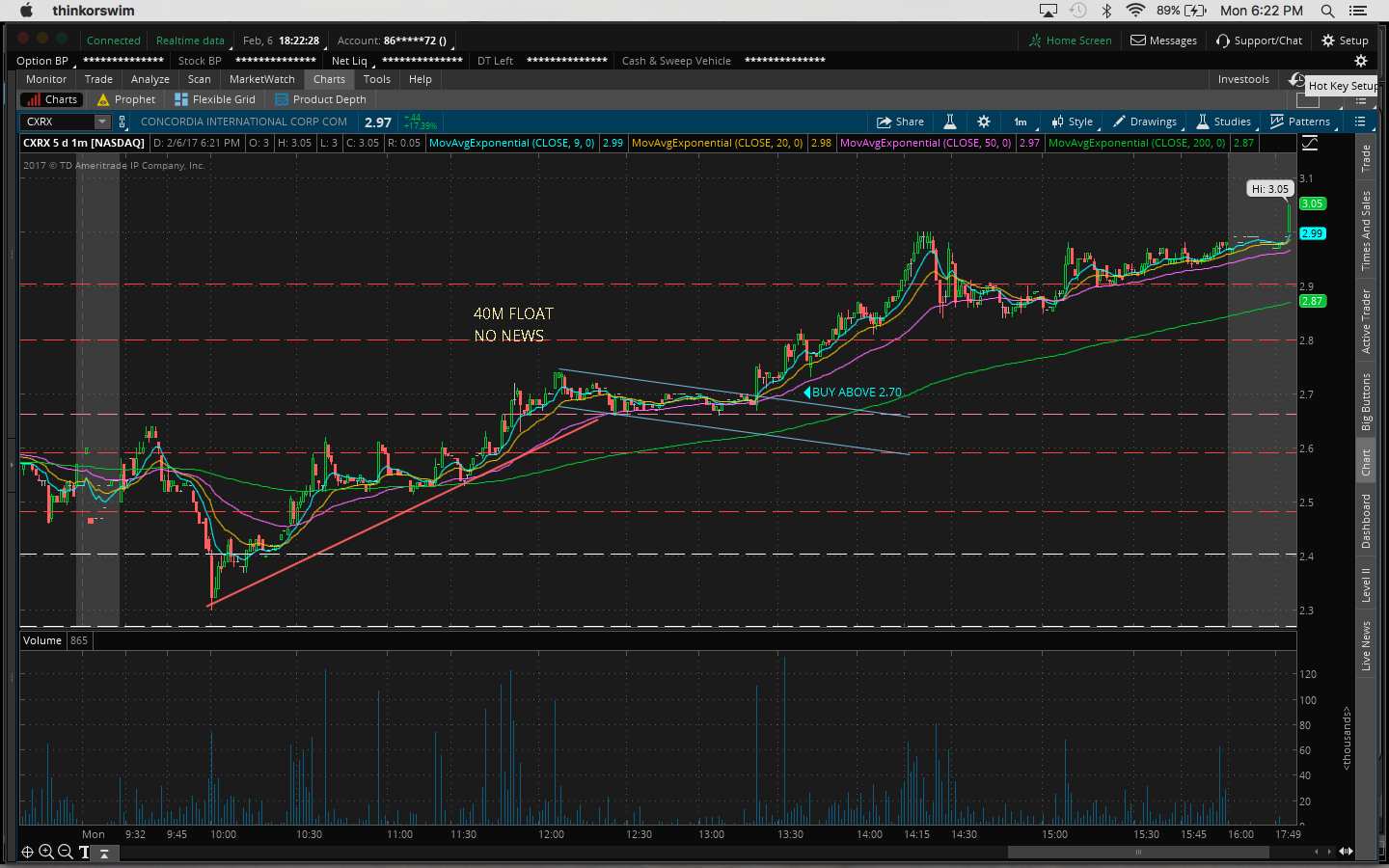 Charts for 2/6/17 - 10 stocks Posted Feb 06, 17 5:30 PMbyPandabearTickers CNAT, GALE, OREX, PULM, CXRX, GLBS, DRYS, NAKD, ETRM, BCEIViews 212 / 3Received 3 Karmas1Vash_Demo Feb 06, 17 9:07 PMNicely done! I love these charts. I also use ThinkorSwim so these are very helpful for me. Thanks for putting in the work.Pandabear Feb 07, 17 7:20 AM@Vash_Demo Thanks! :)Join now or log in to leave a comment