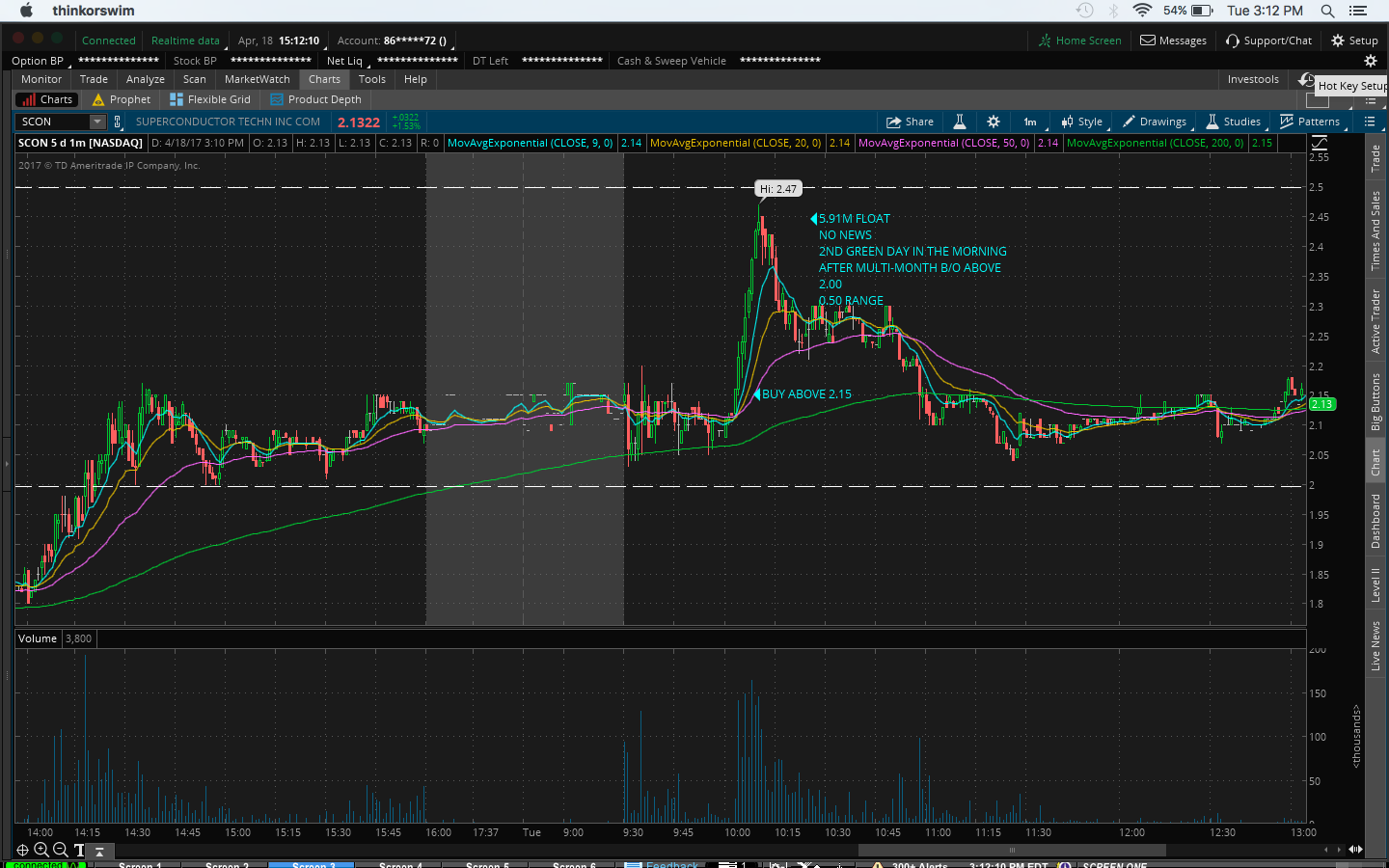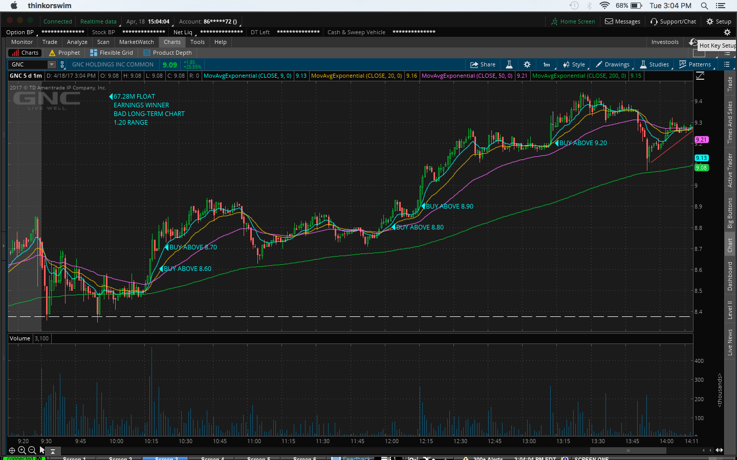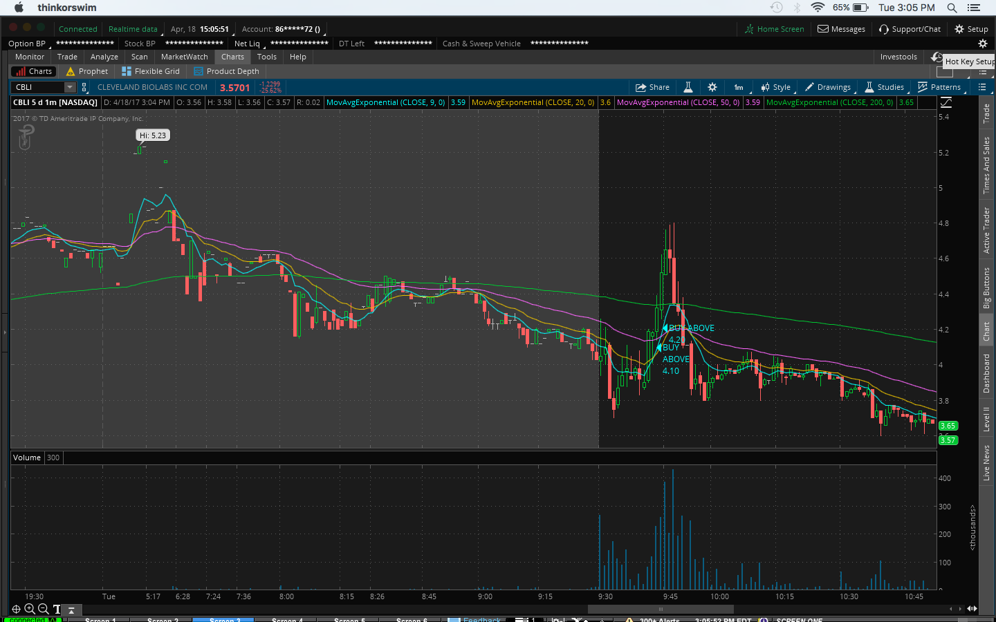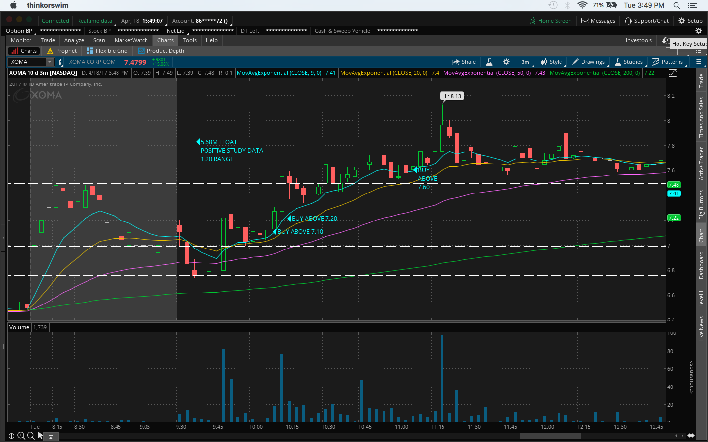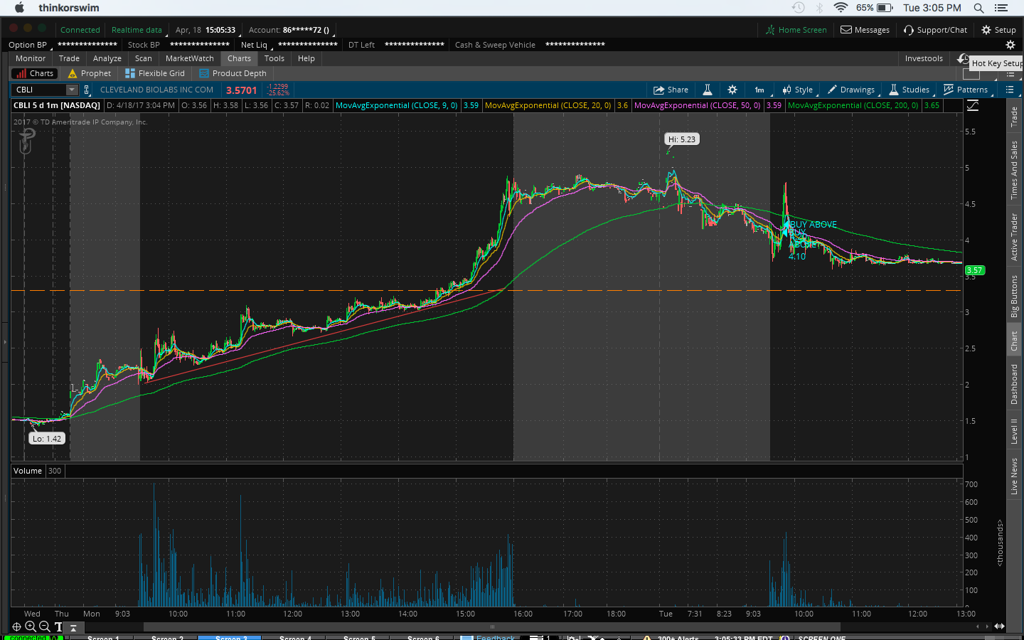 Charts for 4/18/17 - 6 stocks Posted Apr 18, 17 3:40 PMbyPandabearTickers AKTX, XOMA, CBLI, IDXG, SCON, GNCViews 178 / 1Received 1 Karma1DreamMaker Apr 18, 17 4:17 PMYou know the charts, be confident in your ability to make the trades. I hope to see your profits climb. I wish you the best. Pandabear Apr 18, 17 6:48 PM@DreamMaker Thanks. I hesitated on IDXG this morning as I had a negative bias after losing on it before. Join now or log in to leave a comment
