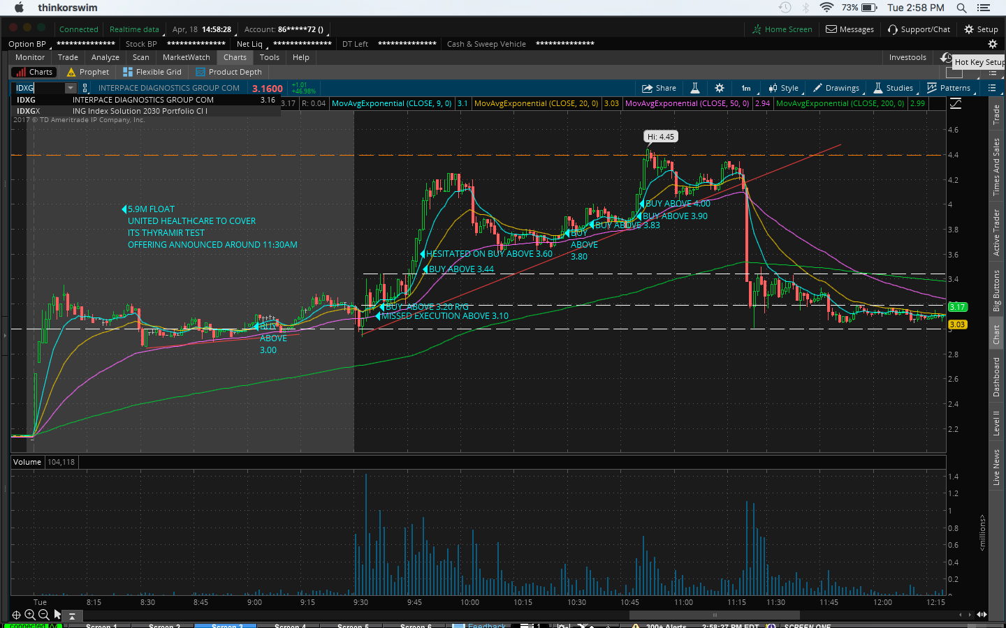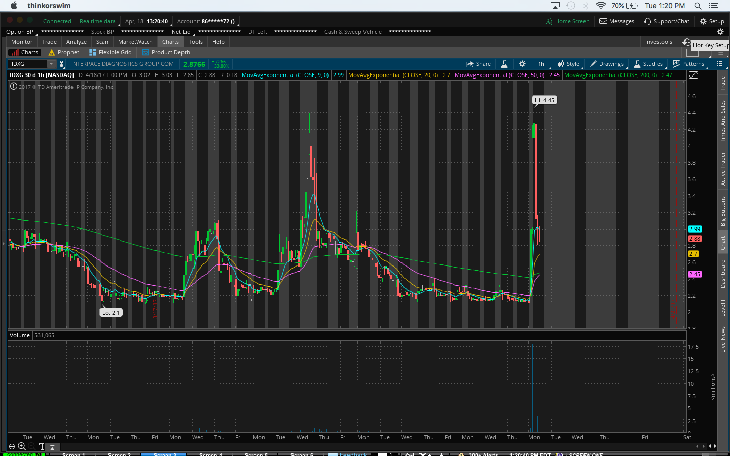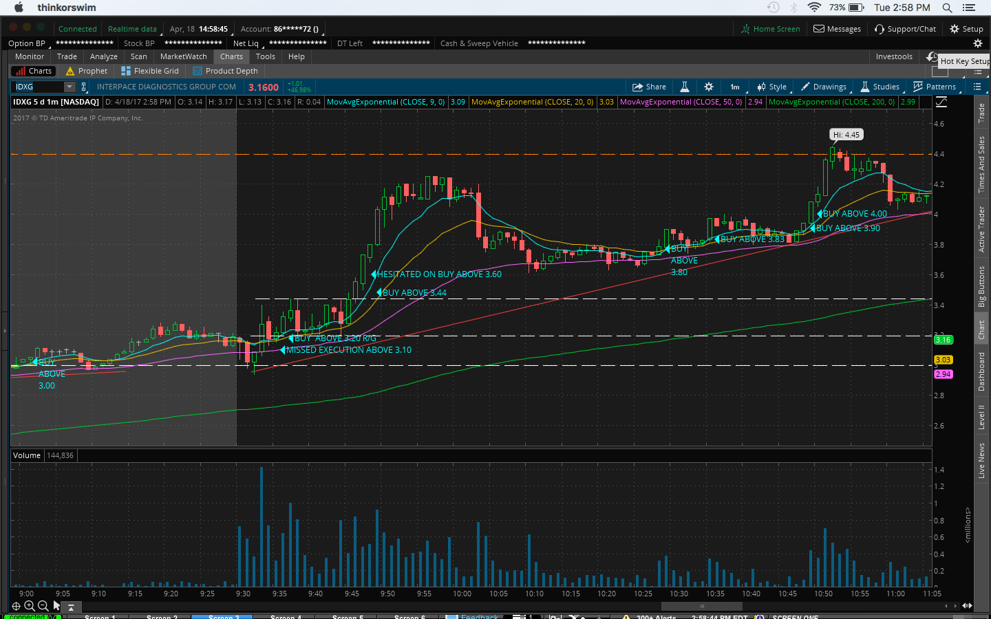 Pandabear Apr 18, 17 6:48 PM@DreamMaker Thanks. I hesitated on IDXG this morning as I had a negative bias after losing on it before.