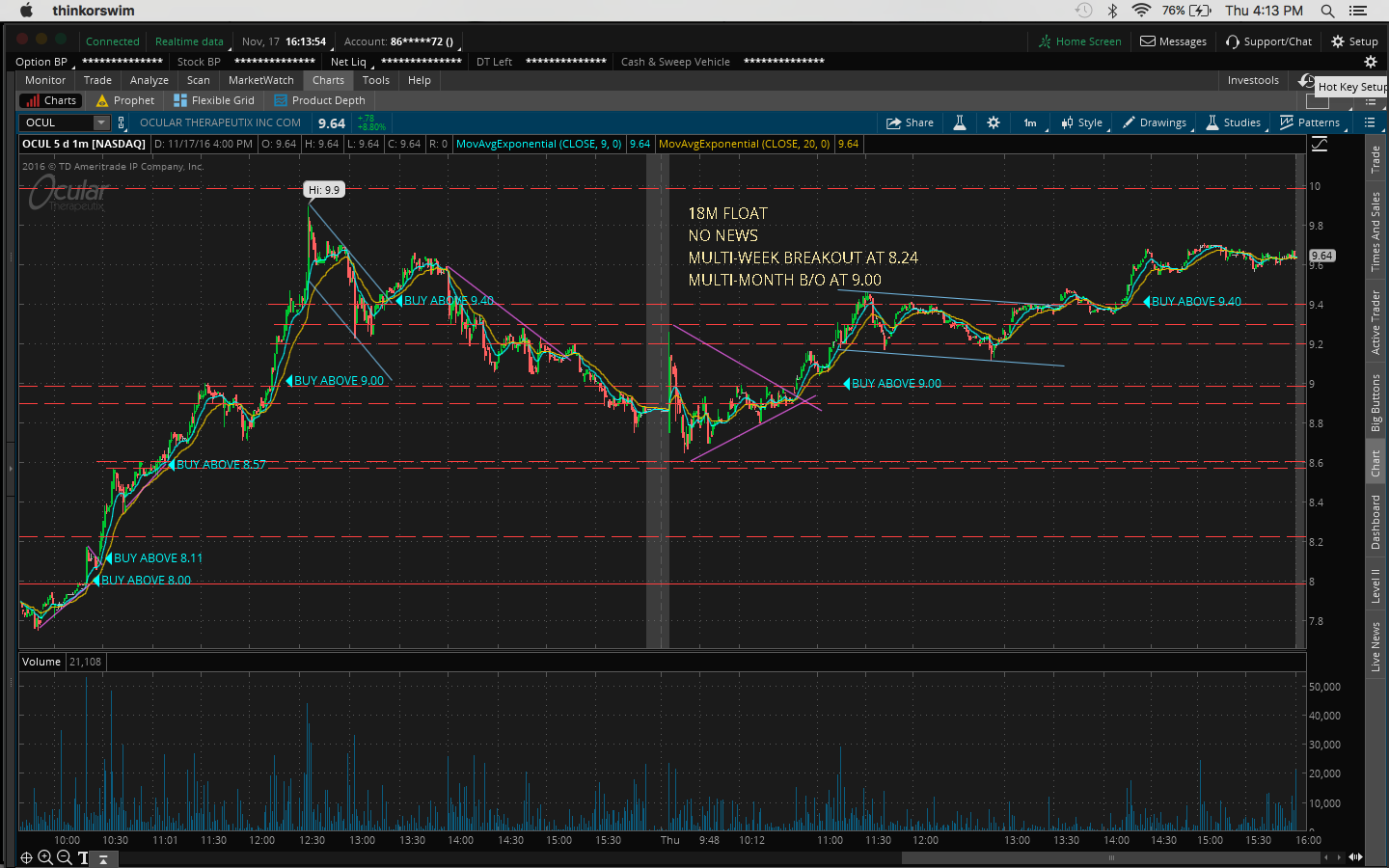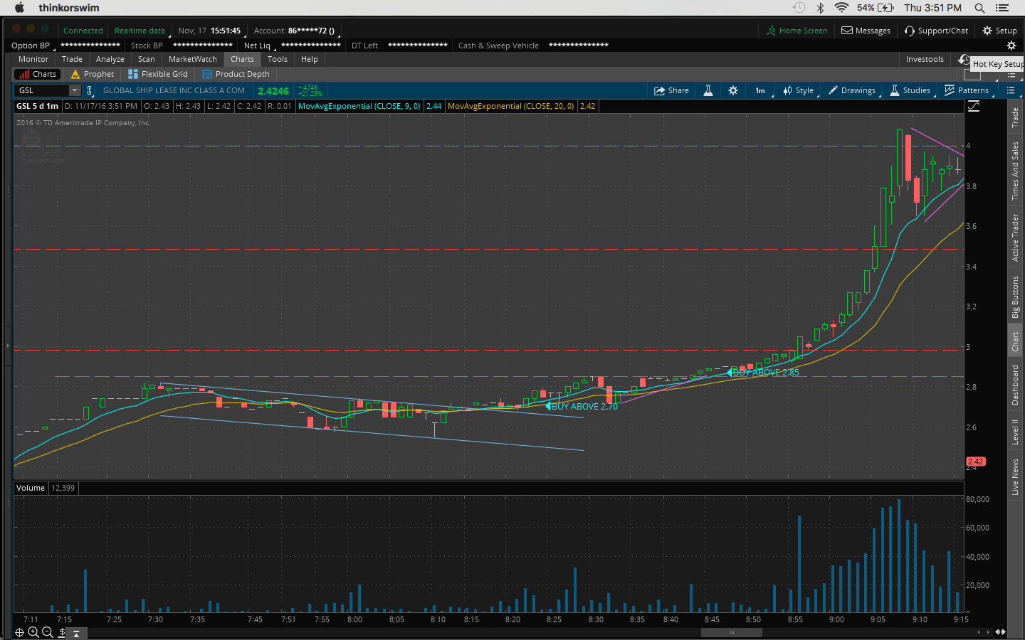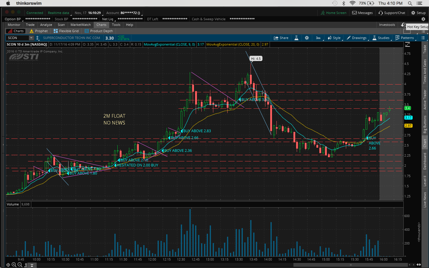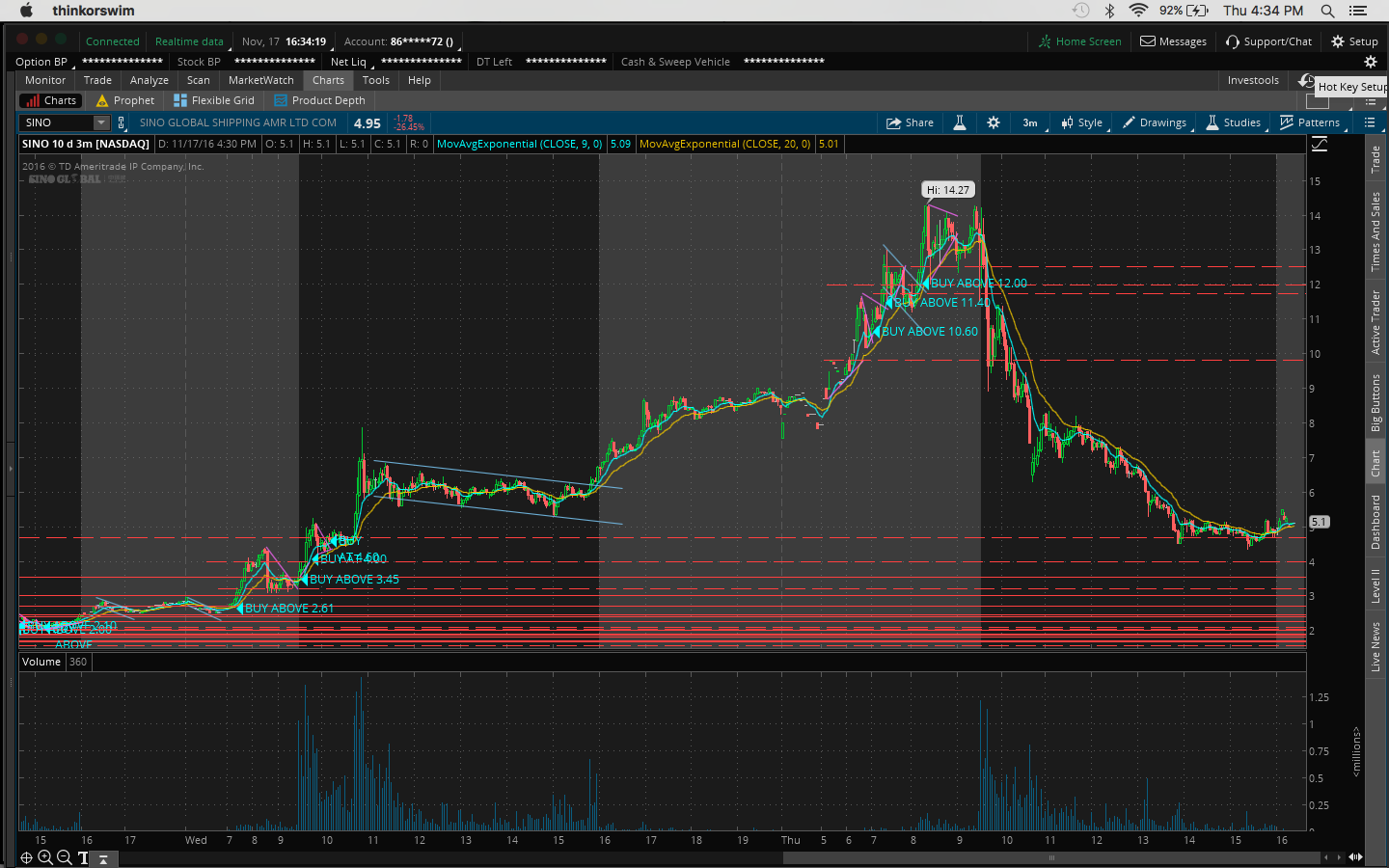 4. There was a bit of fomo going into the trade because I hesitated on a morning buy at 10:45AM at 11.51 when it broke the channel at 11.43 and resistance at 11.50 which would've been a nice 60c/share profit.