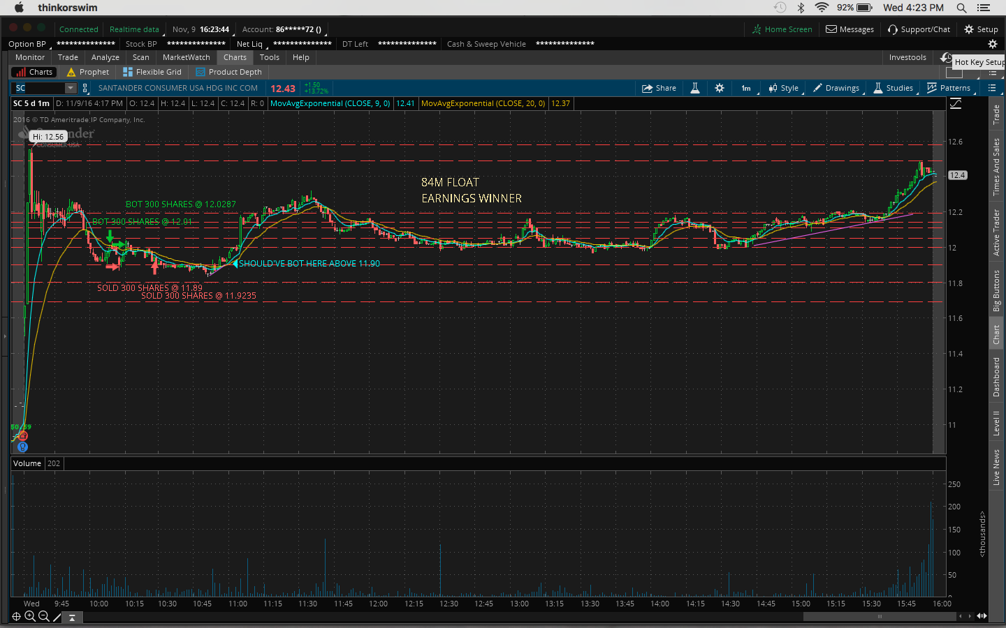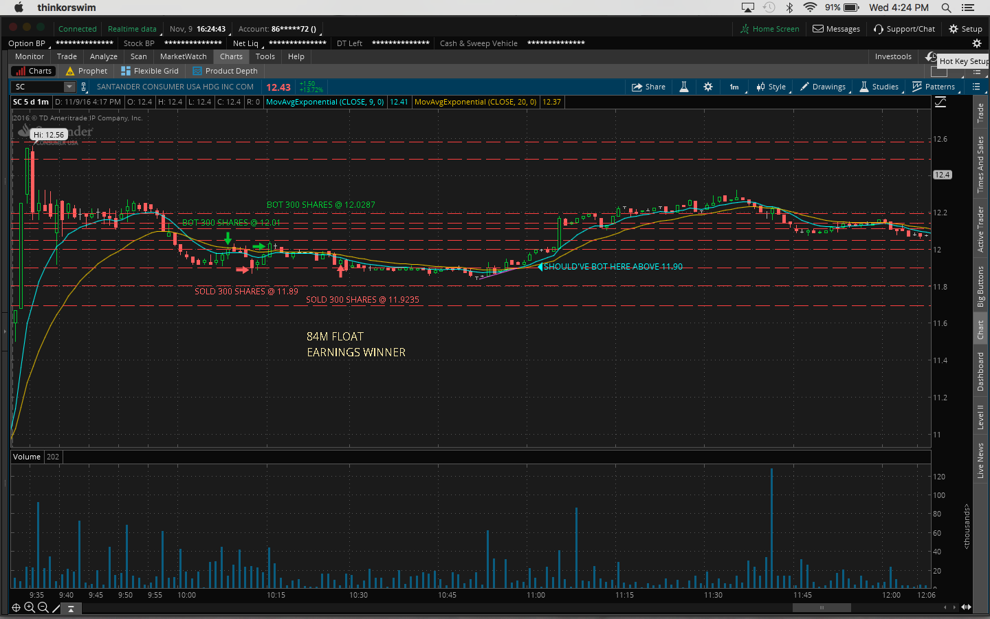 Why I shouldn't have traded $SC today. The setup was bad, I wasn't thorough in my research. I didn't even know it was an earnings winner until after I traded it twice, first time due to fomo from missing out on $LABU and $CANN and second time revenge trading. I didn't look at the support levels properly. Used 11.90 as support but the stronger support level was 11.80. I had traded it before and lost money on it but for some reason thought I was familiar with the stock so traded it without hesitation, go figure lol. It's a slow moving stock that's tricky to trade and I thought I was buying at the right spot on the break above 12 and also bc it's a whole dollar but because it's not a volatile stock it needs to consolidate first before going up. The better buy was on the dip at 11.90 break at 10.56AM almost an hour later. It went to 12.32 which was roughly my target so it could've been a good trade but my emotions got the better of me so have to keep reminding myself to keep them in check. I feel like my trades are like a chart pattern where it's right at resistance and sooner or later it will break out and improve. It's silly because I hesitate on good setups like $LABU this morning which had a clean chart, perfect pattern and volatility where I could've made $4/share or $400 but am more than happy to trade mediocre setups when I'm emotional. It's like your brain can't access the higher brain function where there's logic and reason when you're fomo'g or angry and you just make stupid decisions. Just have to remember you're only as bad or good as your last trade. I was annoyed with myself today but tomorrow is a new day and I MUST do better.