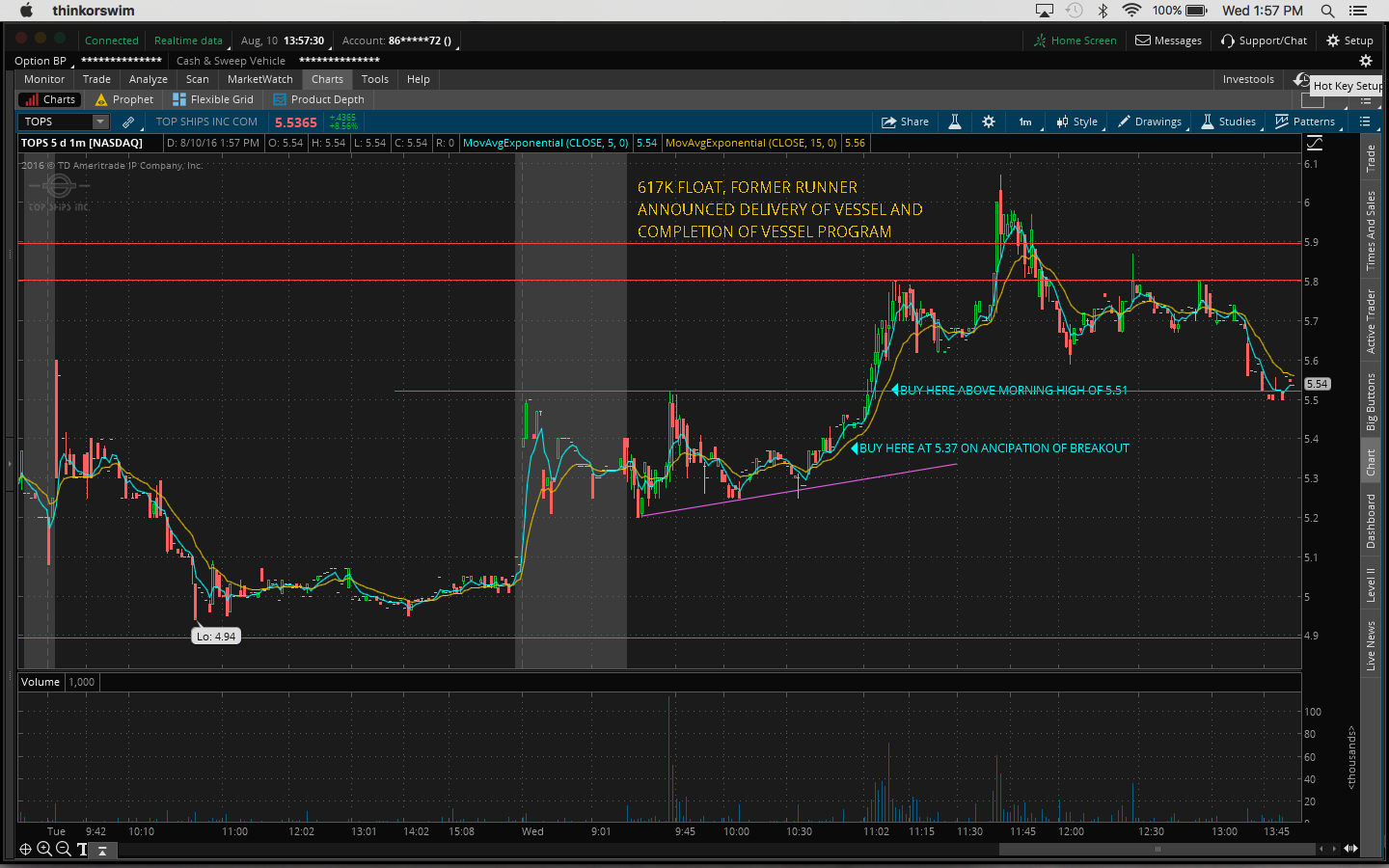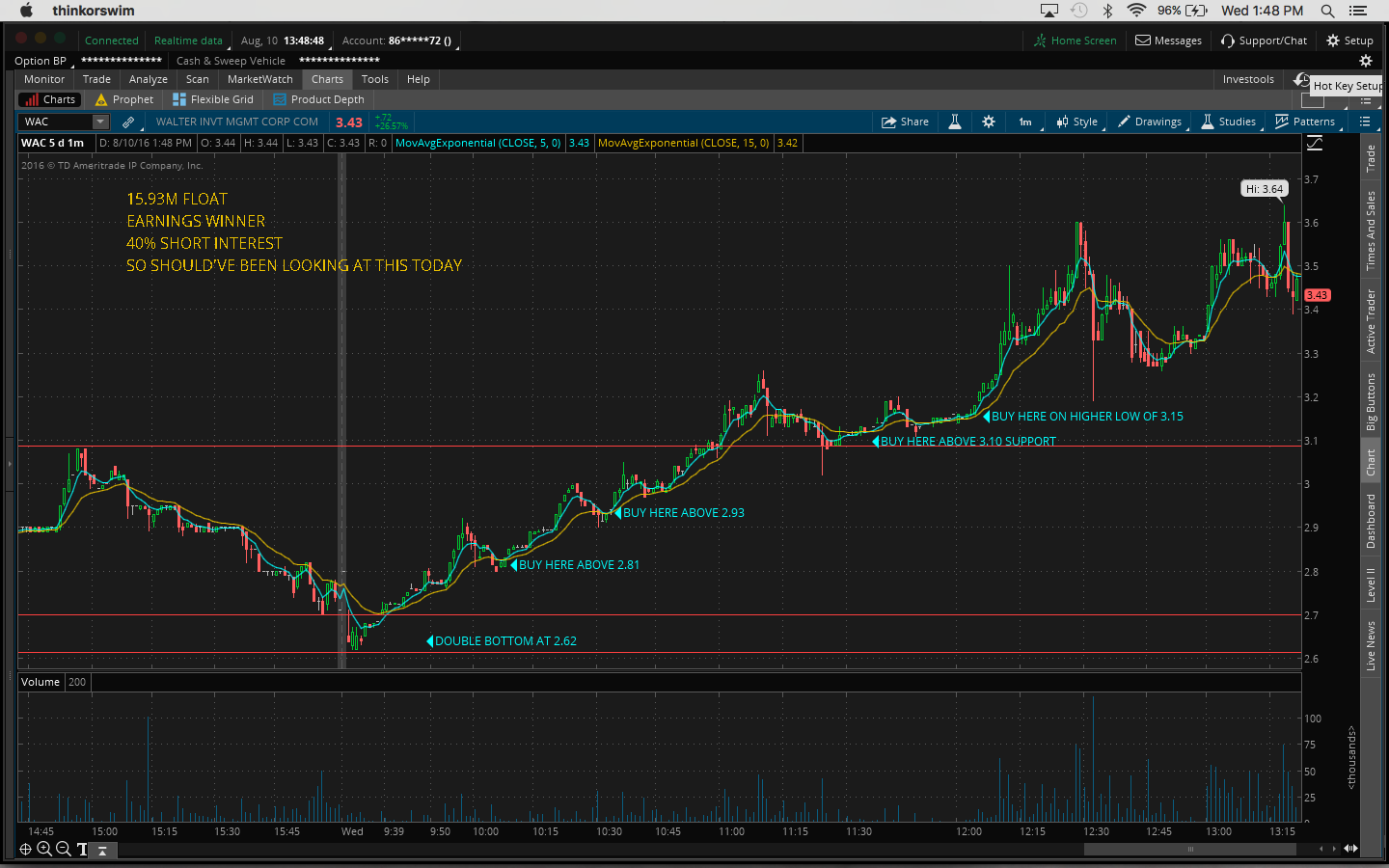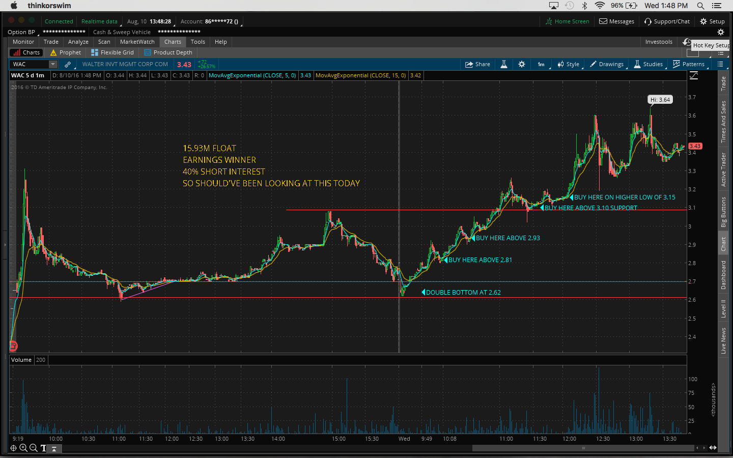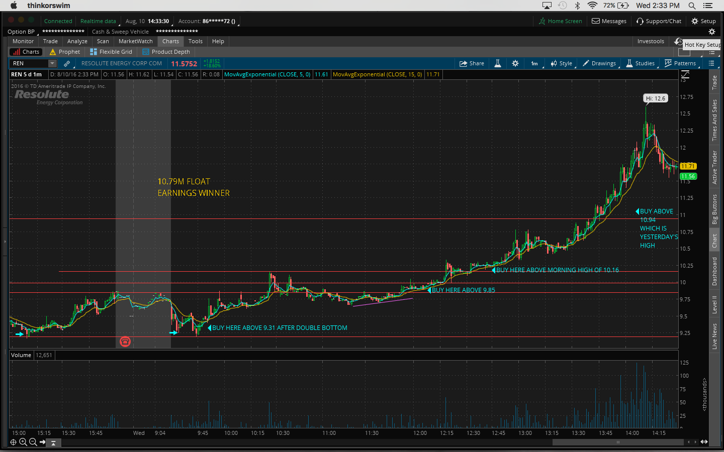 So note to self: you have a watchlist so that you can watch it not ignore it. Also I didn't stay back after hours yesterday to see if anything was up. I'm definitely going to do that today and try to get in early at the start of the move.