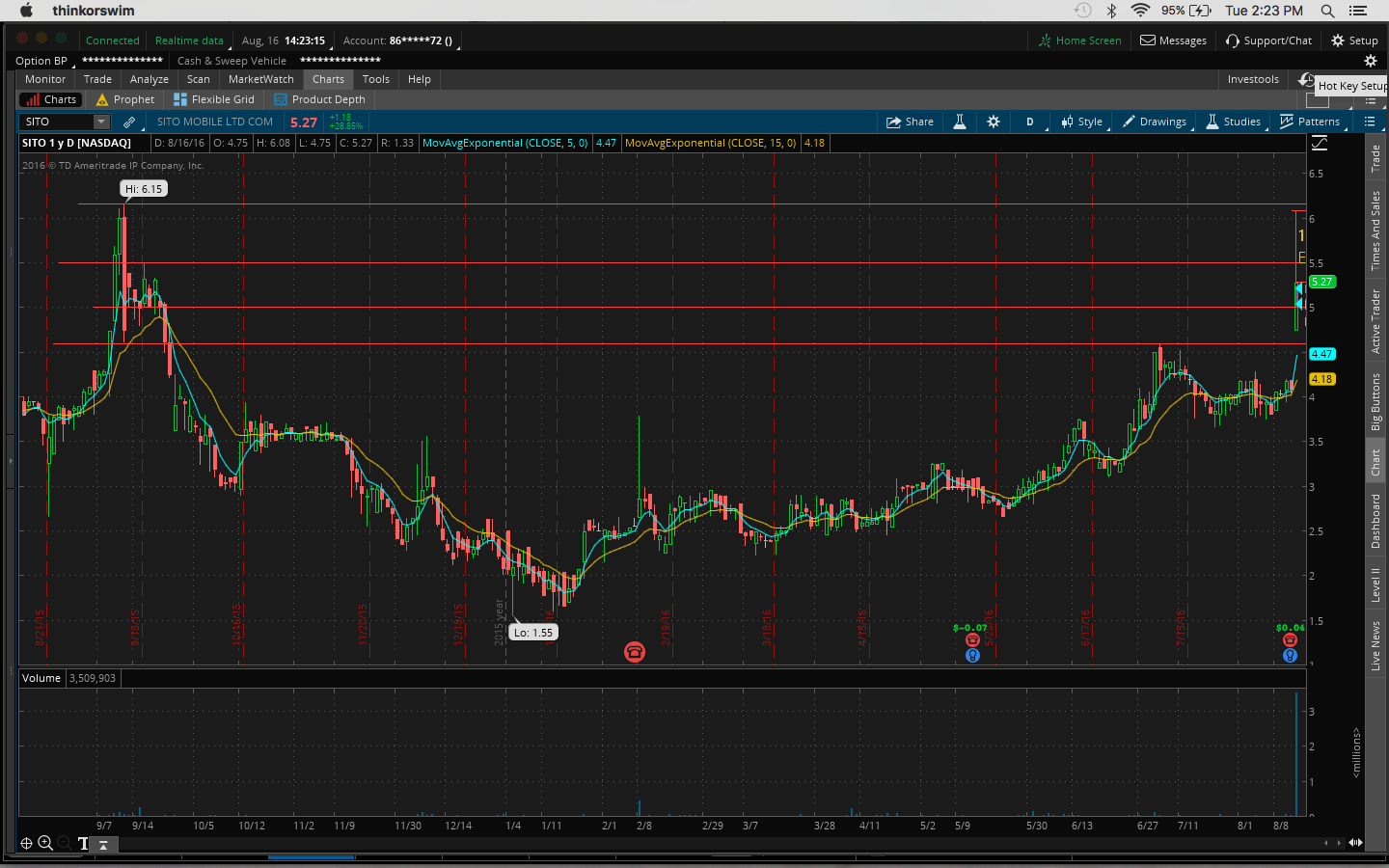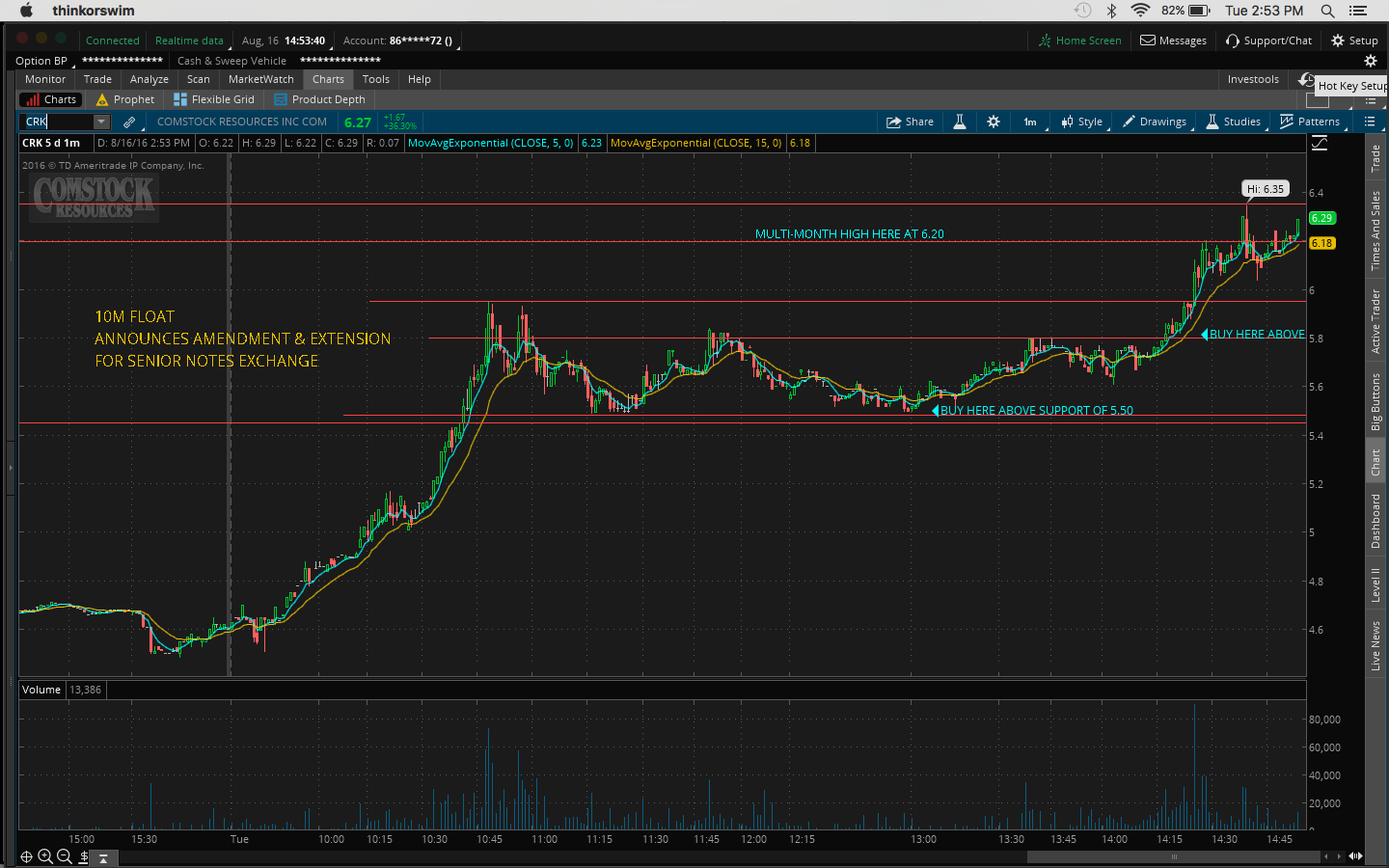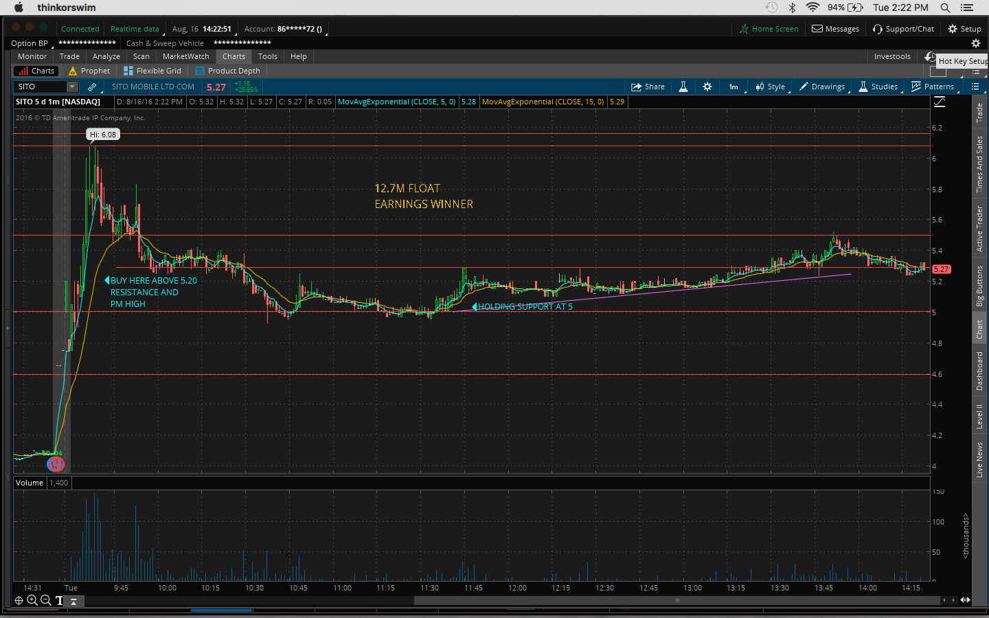 @Juggernaut yeah. It's already up this morning. Got up to 7, it's now 6.76 so up 10%. The dip buy at support at 5.50 was the perfect spot to buy