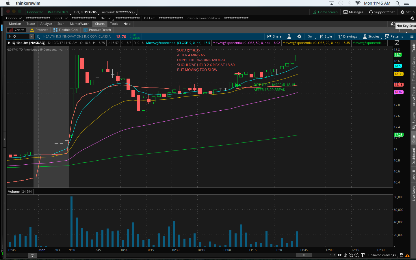 $HIIQ trade, 10M float, no news. 20c/share win. Midday trade, slow mover, sold too soon as it broke high of day. Missed an extra 45c/share! Posted Oct 09, 17 11:48 AMbyPandabearTickers HIIQViews 219 / 1Received 1 KarmaMarcop Oct 09, 17 2:43 PMThey got sued todayPandabear Oct 09, 17 8:14 PM@Marcop Yep, but don't think that affects the share price. They've had ongoing lawsuits for while. It was more of a chart play. Join now or log in to leave a comment