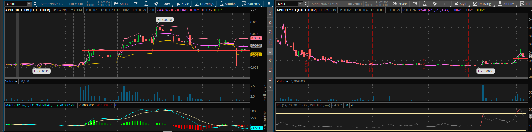 Yesterday's watchlist I said I would buy APHD if it goes down to 0.0025 and that's what I did. New officer change and thinly traded