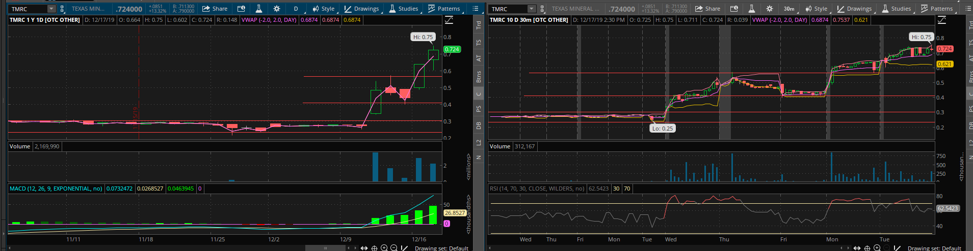 Oh I wished I would have still stayed in this stock. I was in 0.55 and sold 0.58. It's now at 0.73. Where would I pick it up now? 0.58 where I sold it. TMRC is the best rare earth stock on the market. It was hot this summer too. Some of you remember this.