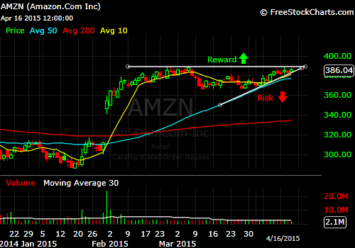 Make the entries at anytime. Risk is below the support line. Allow the stock to breakout the resistance line before taking some profits. Then allow your leftover runners to run as high as you like.