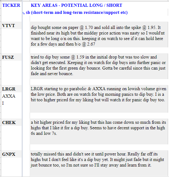 FUSZ, LRGR, AXXA - looking for big morning panics to dip buy on all three (1-3)