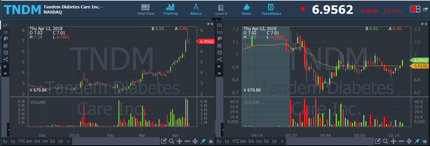 9:57AMmarkcroock:Short 5k $TNDM first red day 6.95 risking red/green (8)