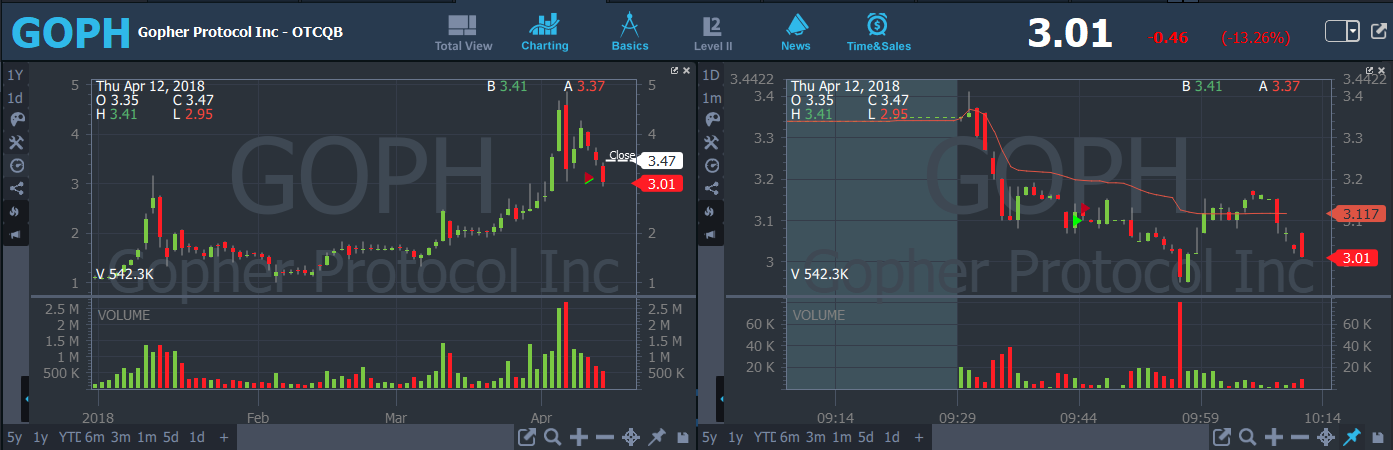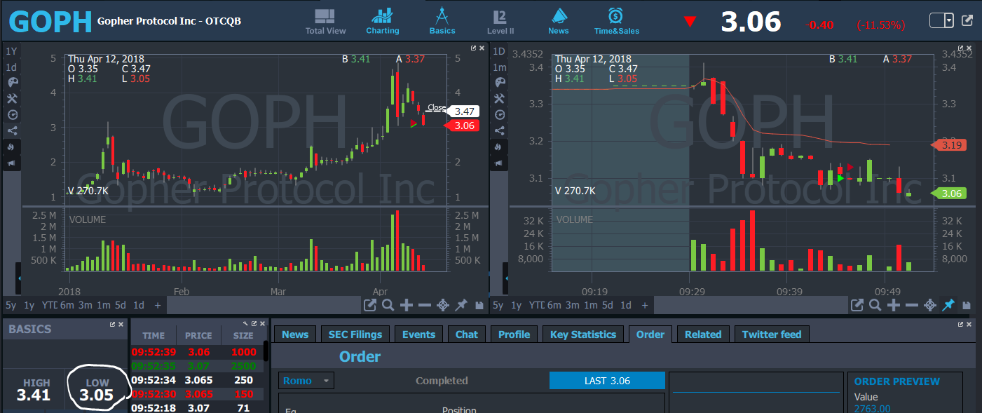 9:59AMTimChallenge timothysykes [Trade] Bought 3371 shares $GOPH at 3 - When nothing else looks great I go back to my classic http://tim.ly/sykesmorning panic pattern, goal is to make 7-15% on the bounce here (9)