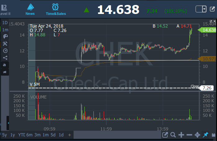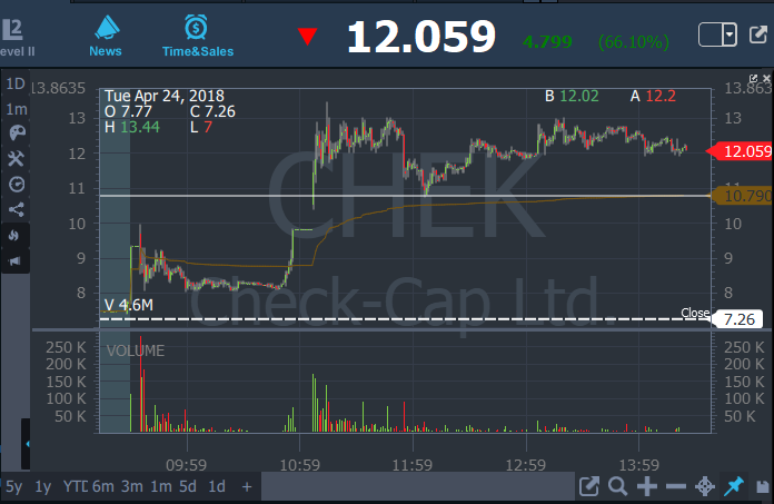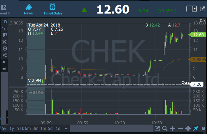 11:20AM - well this turned out to be a great long. Grittani nailed it as he was long since yesterday and gave it time today to work. Multiple halts too. Shorts probably rushed in and made this squeeze. Way too high priced for me to trade but looking at it and learning from it. (8-9)