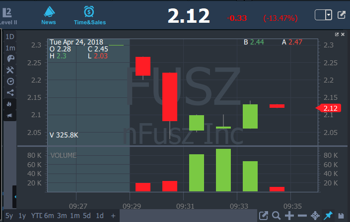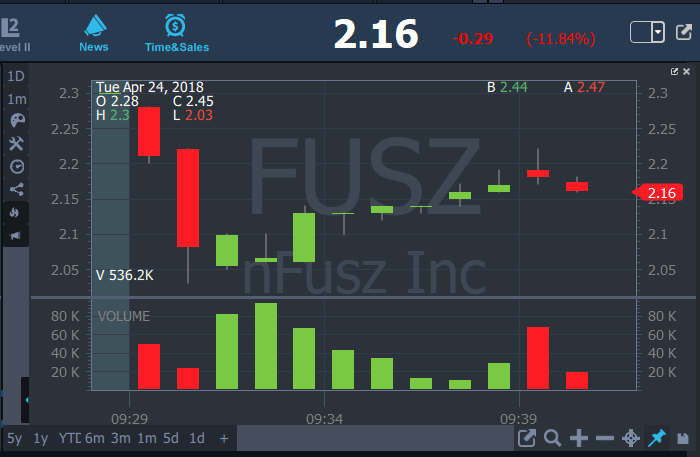 9:41AMTimChallenge timothysykes [Trade Update] Sold 5000 of $FUSZ at 2.14 - Now 2.21 so I played too safe, but giving live http://tim.ly/sykesmc webinar and we're having tech issues so oh well, solid entry (6)