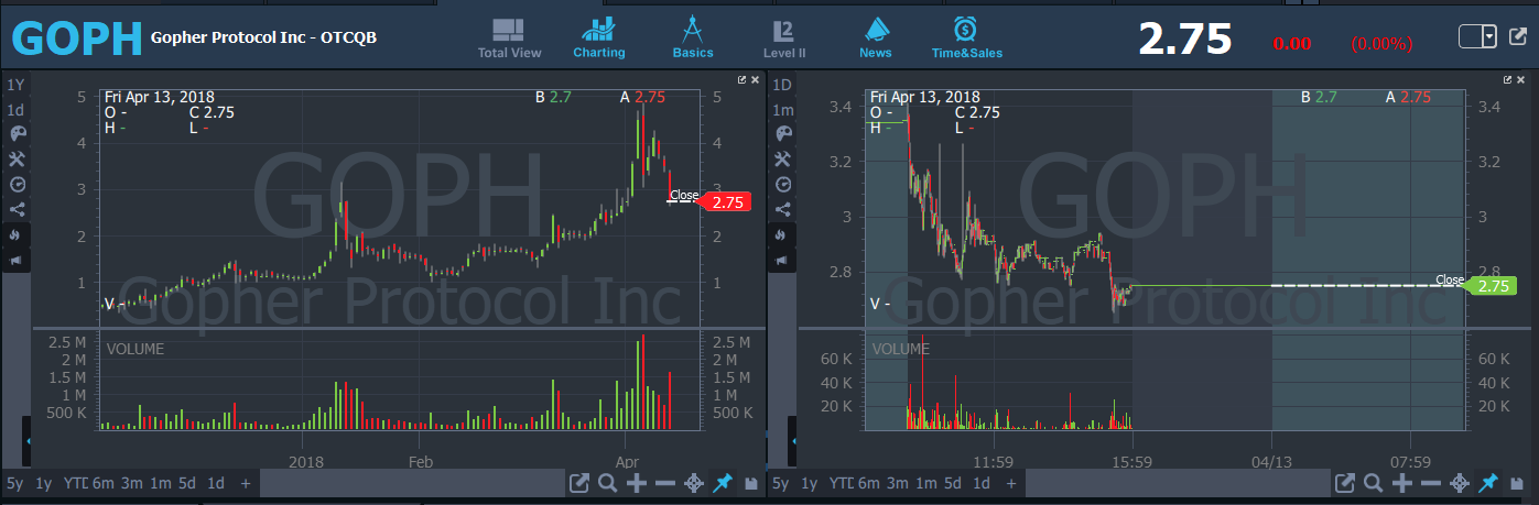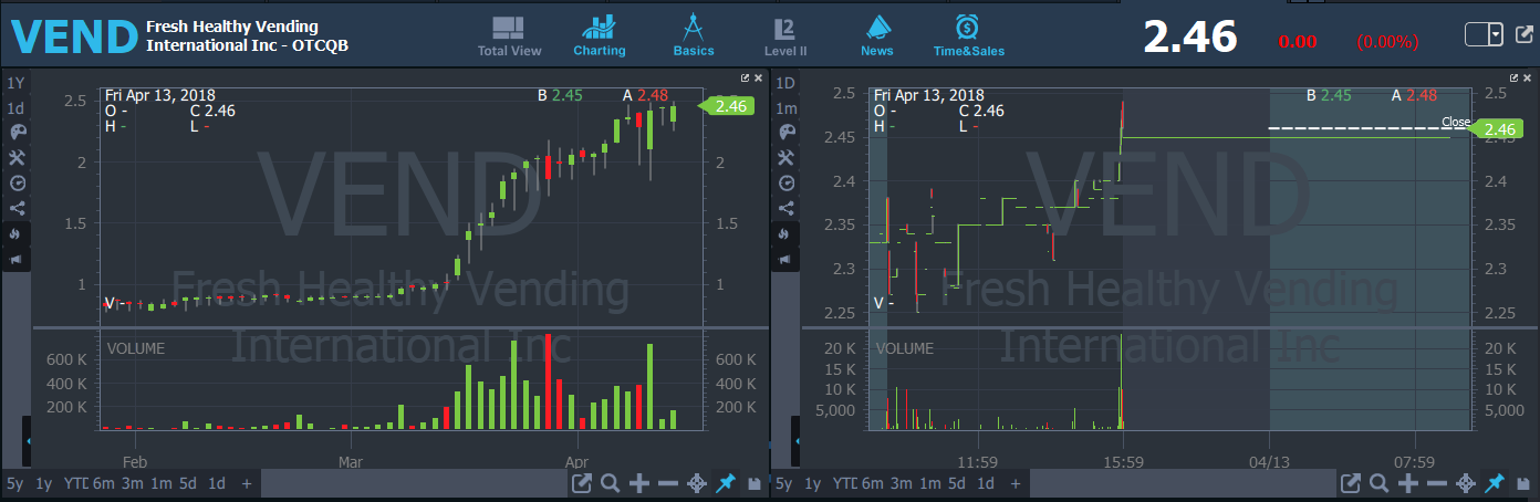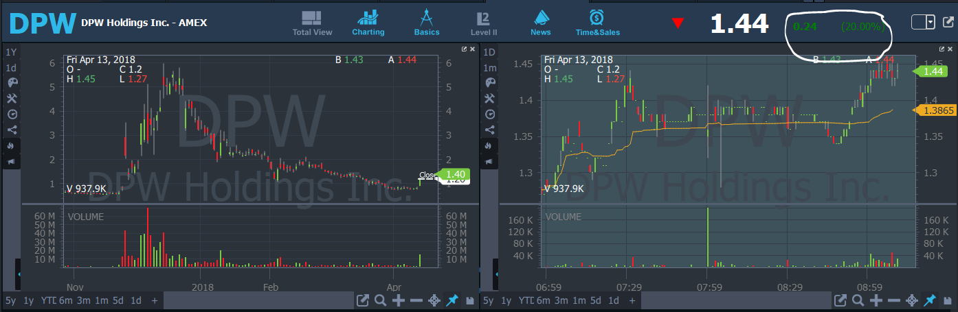 nothing to get too excited about here but will keep it on watch in case it really starts going supernova with big volume. I would be thrilled if this got well above the 2s. If it goes high enough I will look to dip buy a big morning panic